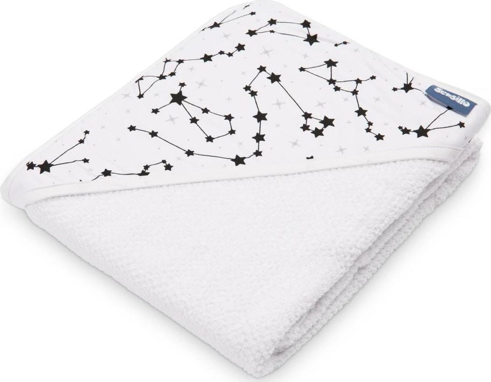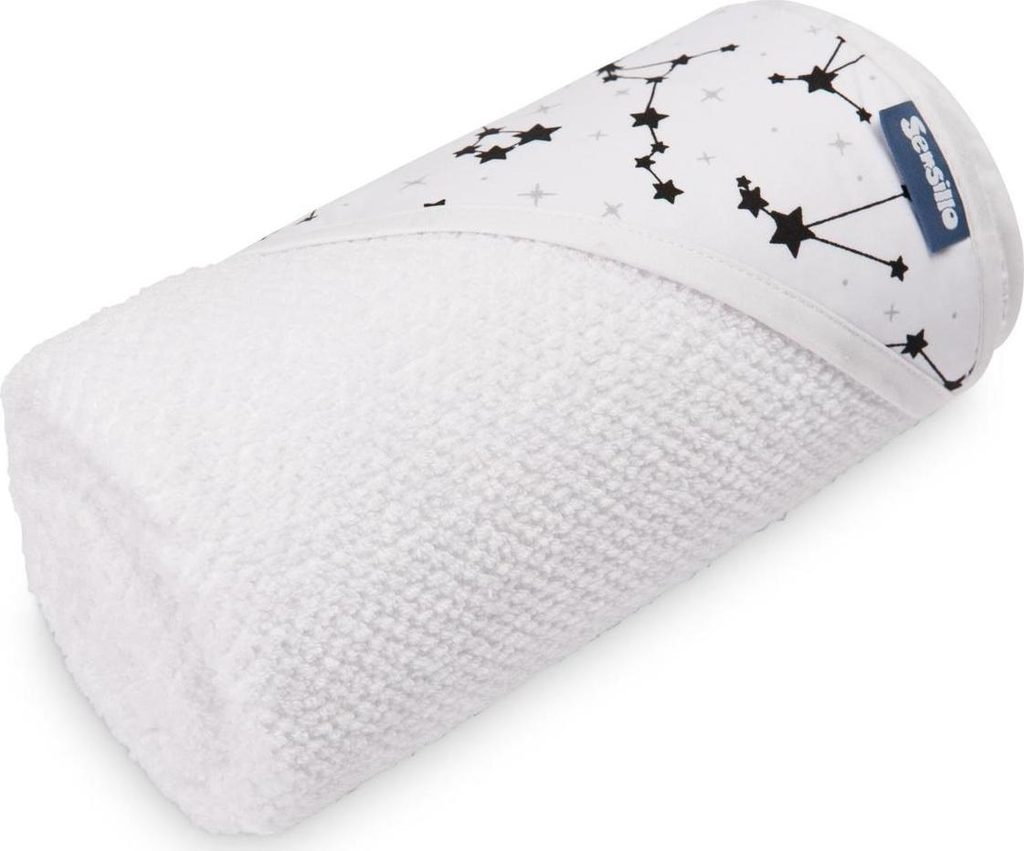 Dětská osuška Sensillo KREPA 100 X 100 cm Bílá s kapucí je výrobek, který je ideální pro zabalení dítěte po koupání. Jako základ jsme použili 100% froté bavlnu v jemných barvách. Díky použití jedinečného vázání se potah podobá krepovým látkám, takže je ještě měkčí, příjemnější na dotek a savější. Prostornou osušku zdobí elegantní bavlna s potisky. Zaměřili jsme se na velkou velikost 100 × 100 cm, aby bylo zabalení dítěte ještě jednodušší.