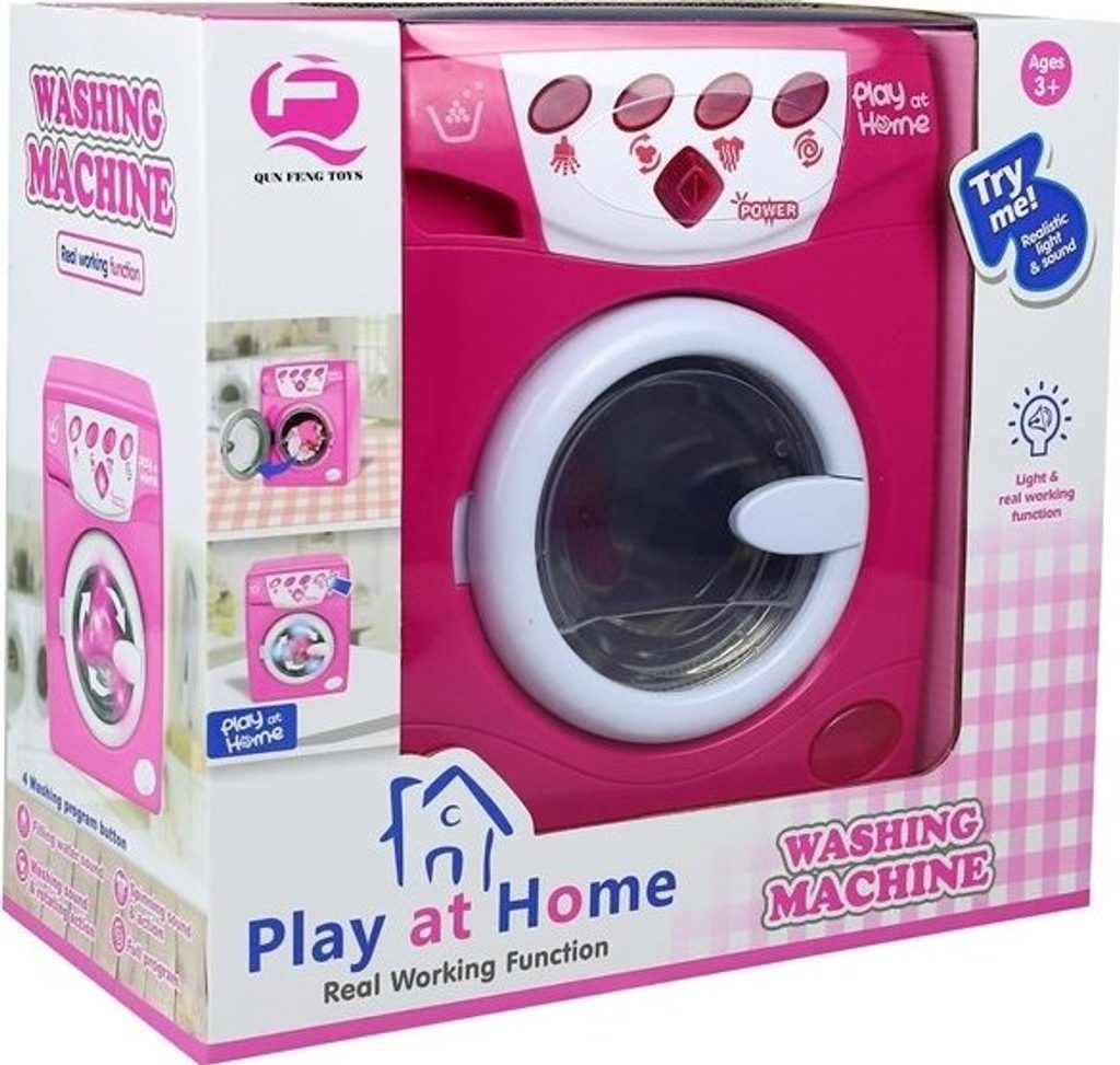 Skvělá zábavná, realistická a kvalitně zpracovaná pračka pro malou hospodyňku. Nyní se každá dívka bude moci postarat o outfity svých oblíbených panenek a medvídků. Stačí dát oblečení do pračky, zvolit vhodný program (praní, máchání, odstřeďování) a je to!