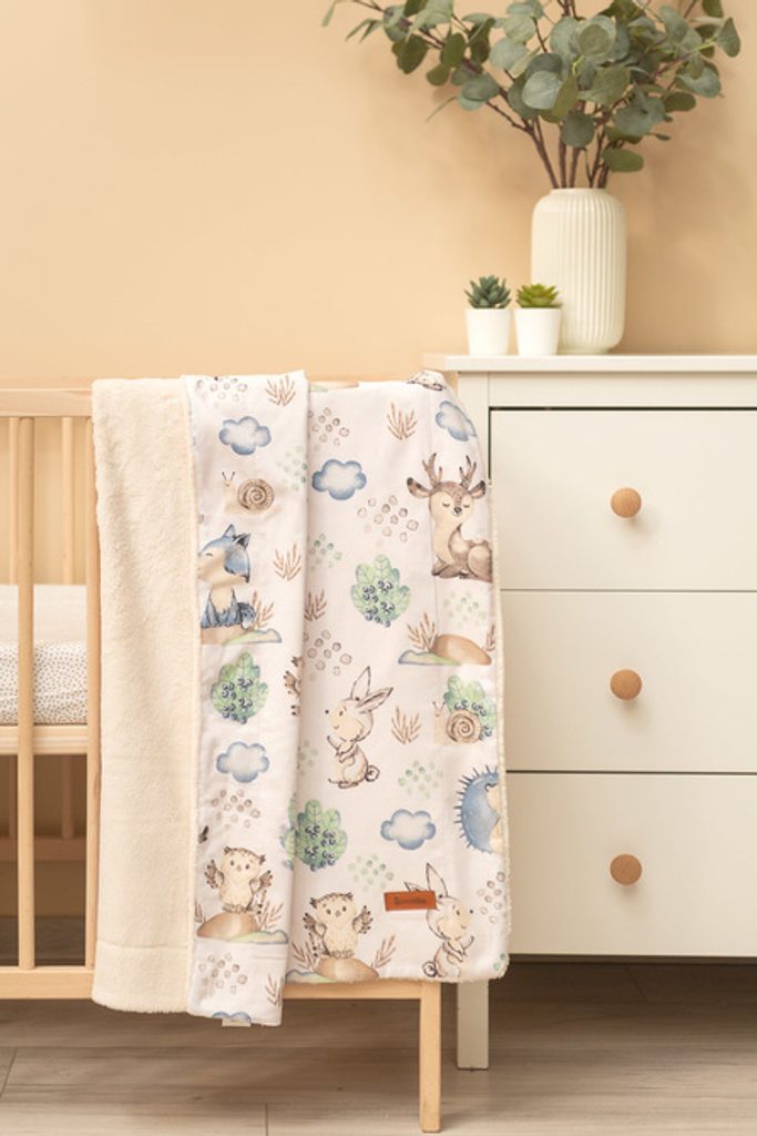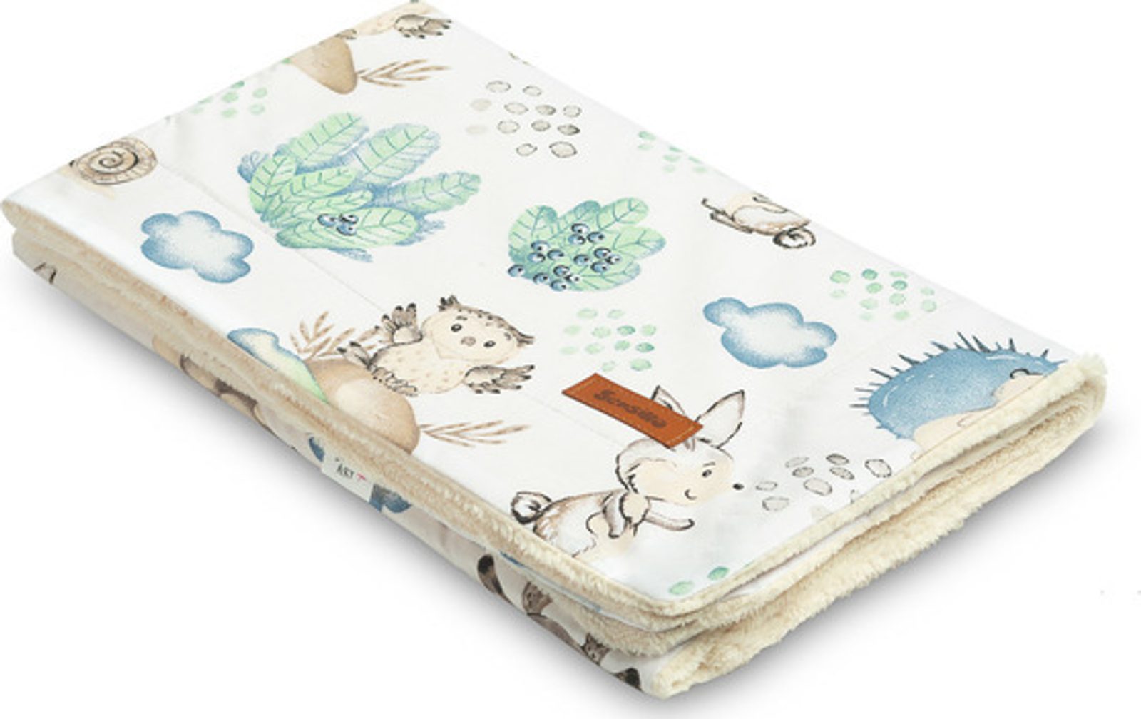 Plyšová deka je velmi dobrým řešením pro časné podzimní a jarní procházky. Je vyrobena z kombinace měkkého plyše a 100% bavlny. Příjemná vnitřní vrstva poskytuje teplo v chladnějších dnech. Podle potřeby ji lze použít z obou stran. Díky svým univerzálním rozměrům je vhodná do pokoje i na procházky. Je praktická a lehká a v kočárku zabere jen málo místa. Nemá žádnou další výplň.