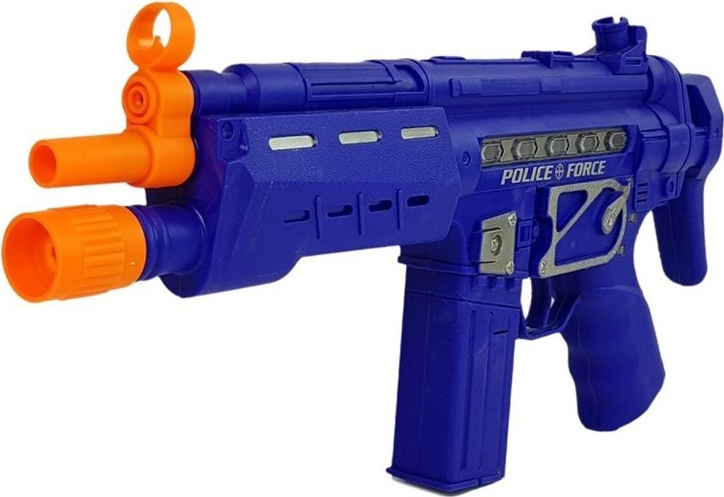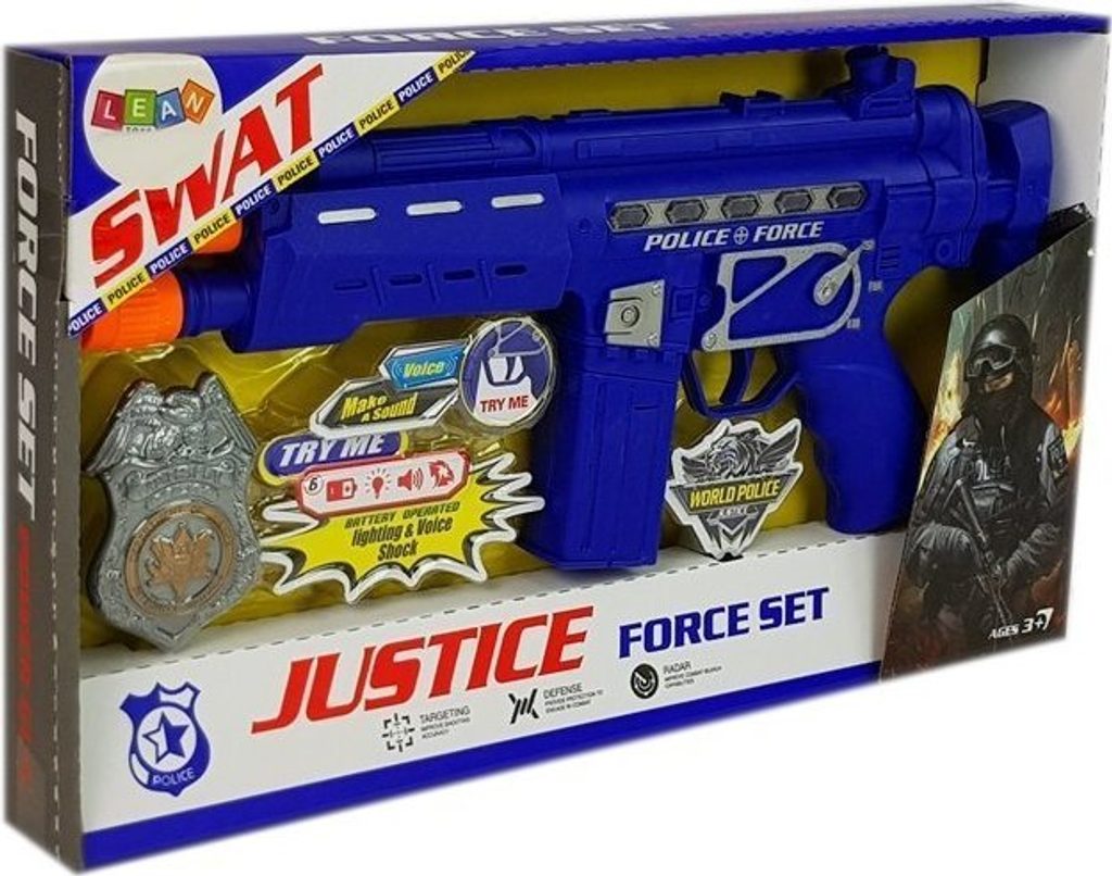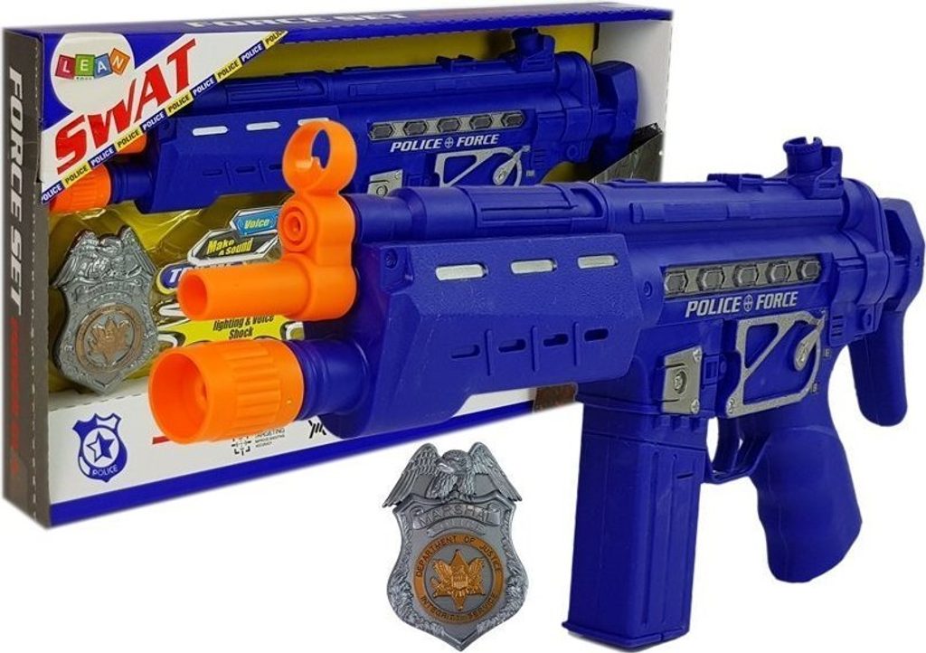 Sada pro mladého uniformovaného důstojníka se skládá ze dvou prvků. Všechny jsou vyrobeny z vysoce kvalitního materiálu , který zaručí, že budou Vašemu dítěti dlouho sloužit. Pistole je vyrobena v tmavě modré barvě. Puška vydává zvuky rychlé střelby, stačí stisknout spoušť. Žádný zloděj neuteče! Fantazie vašeho drobečka se určitě rozvine. Další výhodou je světelný efekt při střelbě a vibrační režim se aktivuje po stisknutí spouště.