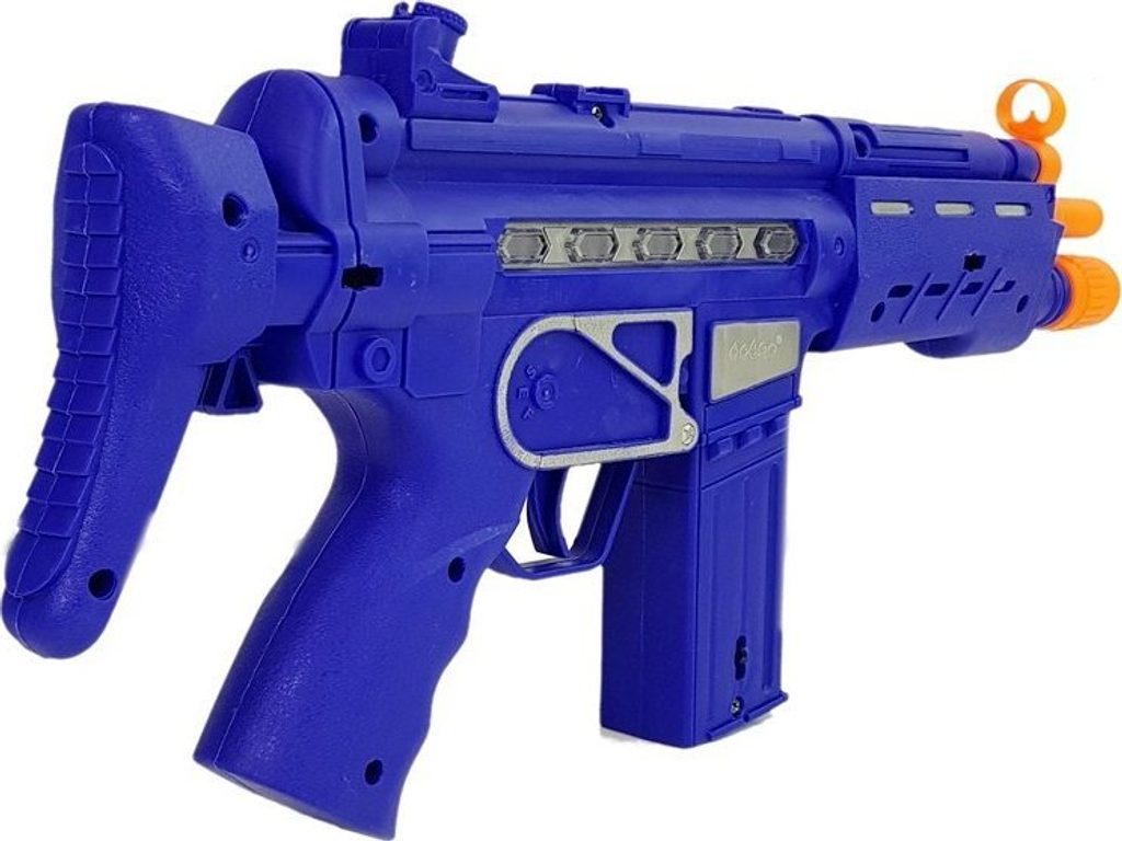 Pistole je vyrobena v tmavě modré barvě. Puška vydává zvuky rychlé střelby, stačí stisknout spoušť. Další výhodou je světelný efekt při střelbě a vibrační režim se aktivuje po stisknutí spouště.