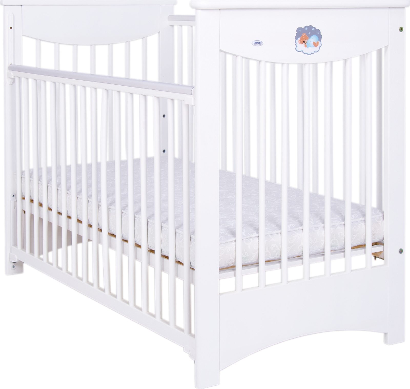 Dětská postýlka Drewex Laura z borovicového dřeva s klasickým obloukovým designem, ideální pro miminka. Dřevěná postýlka má regulovatelný rošt, který lze nastavit do tří poloh. Rozměry: cca 120x60 cm. Matrace není součástí postýlky. Postýlka je se stahovací bočnicí.