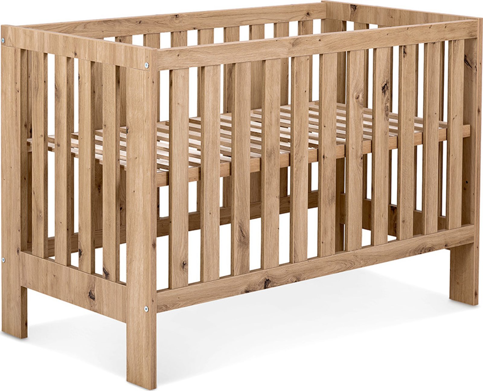 Postýlka Amelia II dub 120×60 má 2 odnímatelné příčky a 3 úrovně nastavení výšky dna. Příčky, které jsou umístěny jak v bocích postýlky, tak v její horní části, vám umožní pozorovat spící miminko ze všech stran. Barvy dětské postýlky Amelia II zútulní interiér dětského pokoje - bude dokonale ladit s pastelovými odstíny každého pokojíčku. Tato dětská postýlka se hodí jak do pokojíčku pro kluka, tak i pro holčičku.