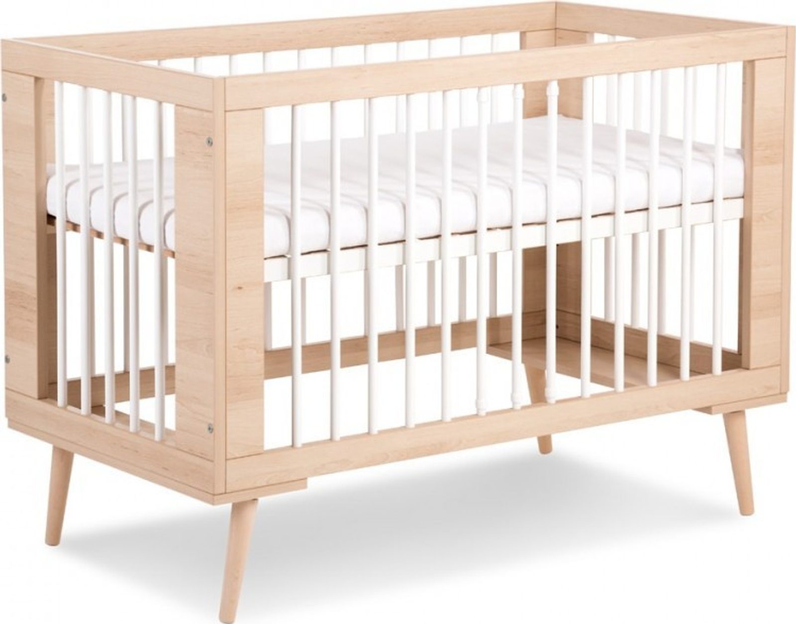 Povrchová úprava - zdravotně nezávadný lak. Moderní postýlka vyrobená z bukového a borovicového dřeva v kombinaci s MDF materiálem. Vnitřní rozměr : 120 x 60 cm Vnější rozměr: ↔124 ↕88 ●66 Postýlka má nastavitelnou výšku roštu ve 3 volitelných polohách a tři odnímatelné příčky pro průlez. Jednoduchá montáž. Matrace není součástí.