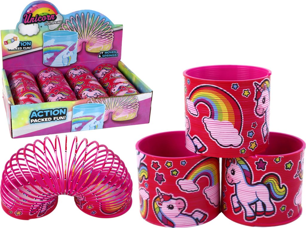 Ikonická světle růžová pružina zdobená motivem jednorožce a duhy. Poskytuje spoustu zábavy a má uklidňující účinek na děti i dospělé. Je to perfektní dárek a způsob, jak se pobavit a odpočinout si v jednom.