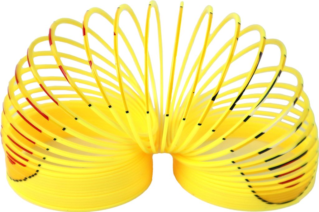 Žlutá pružina zdobená motivem emotikonů. Poskytuje spoustu zábavy a má uklidňující účinek na děti i dospělé. Je to perfektní dárek a způsob, jak se pobavit a odpočinout si v jednom.