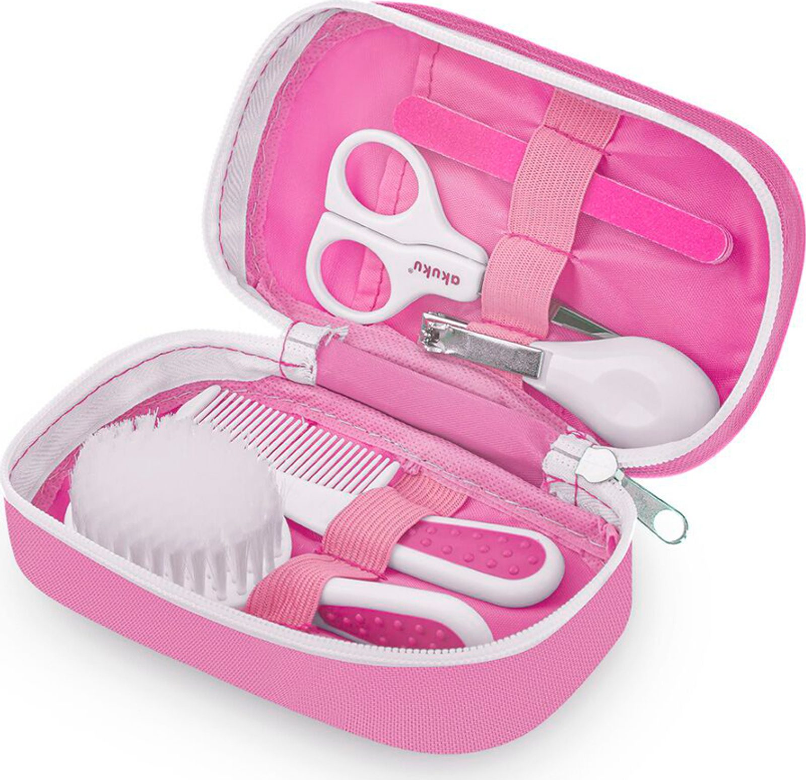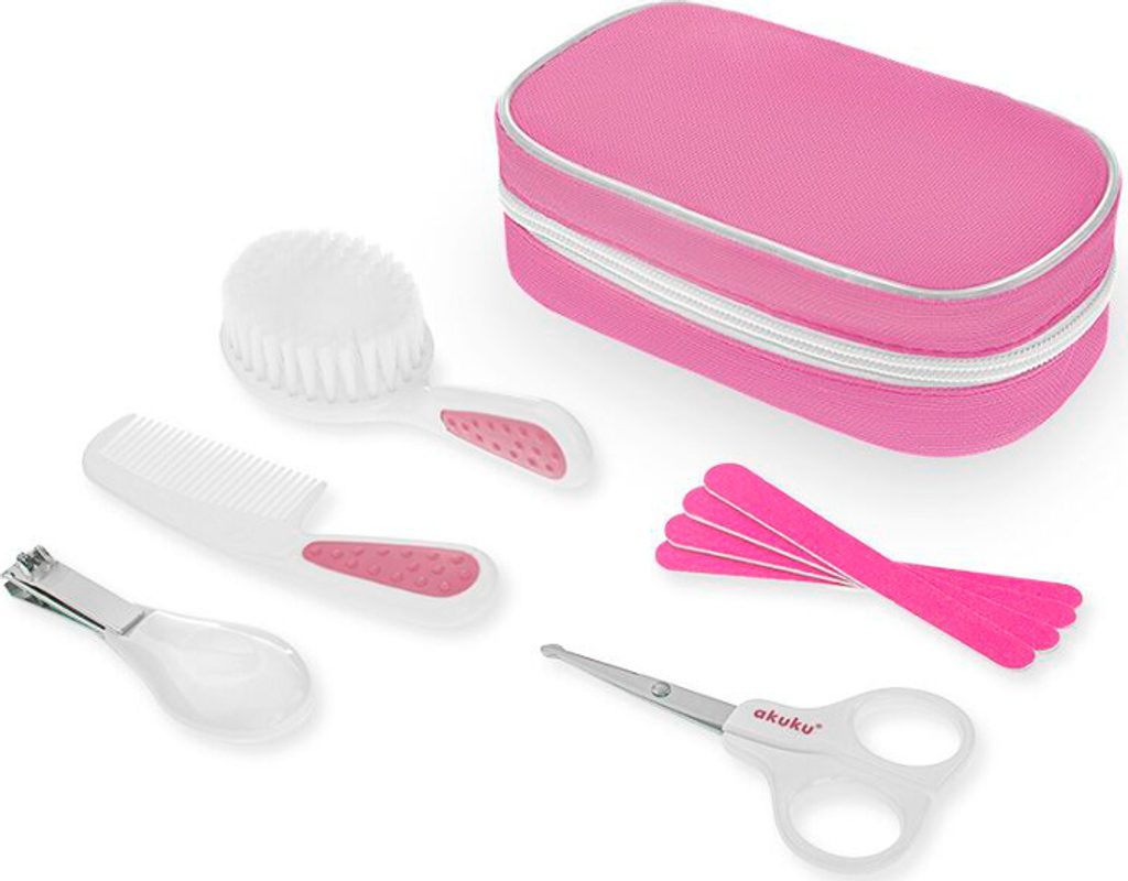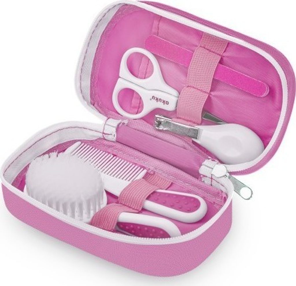 Sada obsahuje: nůžky, kleště, pilník na nehty, kartáč a hřeben na vlasy.