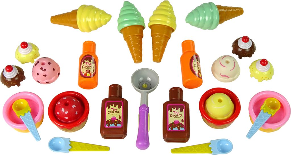 Sada se skládá z lahodně vypadajících cupcaků a zmrzliny v různých barvách. Další doplňky, jako jsou lžičky, šálky nebo omáčky, pomohou vytvořit atmosféru malého setkání se sladkostí.