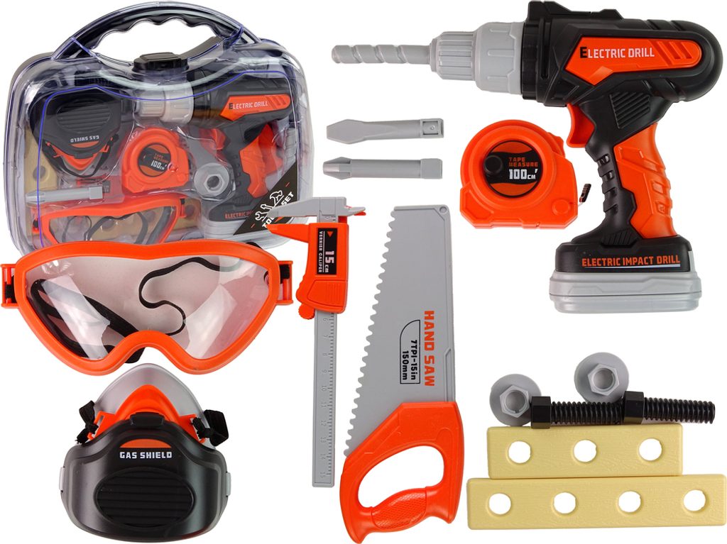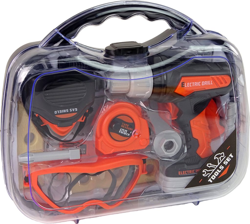 Celá sada je uzavřena v praktickém kufru. Uvnitř jsou nástroje vyrobené z plastu. Vrtačka je napájena bateriemi, po vložení baterií a stisknutí tlačítka se vrtačka roztočí a navíc vydává realistický zvuk.