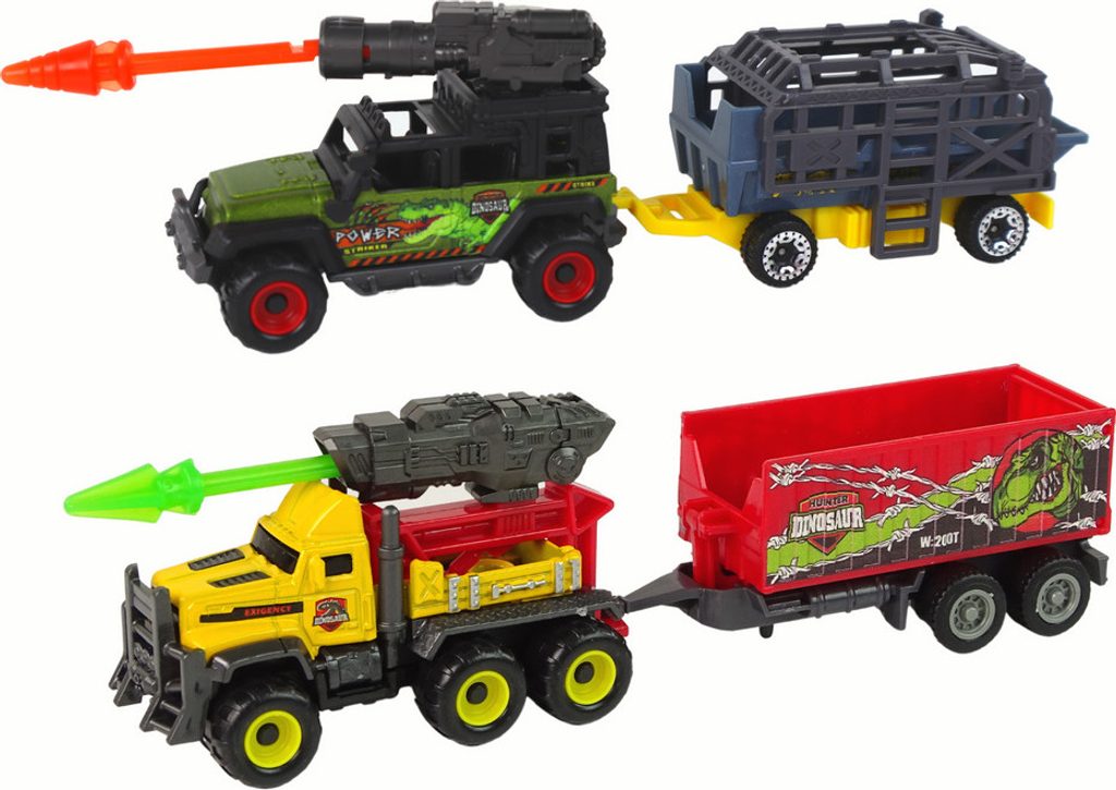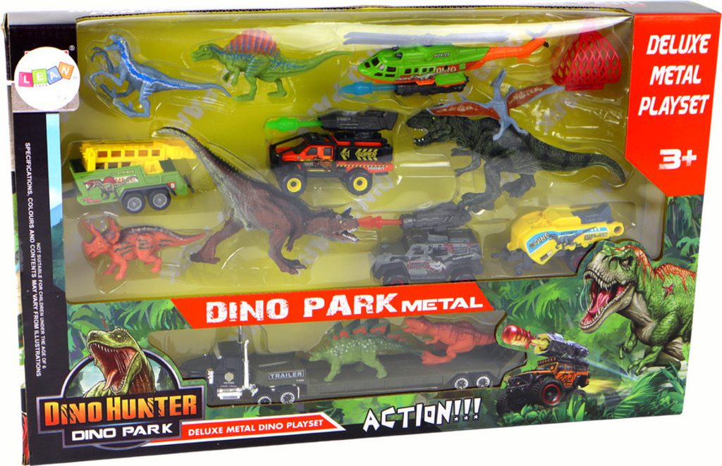 Sada obsahuje tři realistická vozidla s přívěsy, vrtulník, osm různých dinosaurů a chytač. Je vyrobena z gumy a plastu. Poskytuje spoustu příležitostí ke hře, rozvíjí dětskou fantazii a kreativitu.
