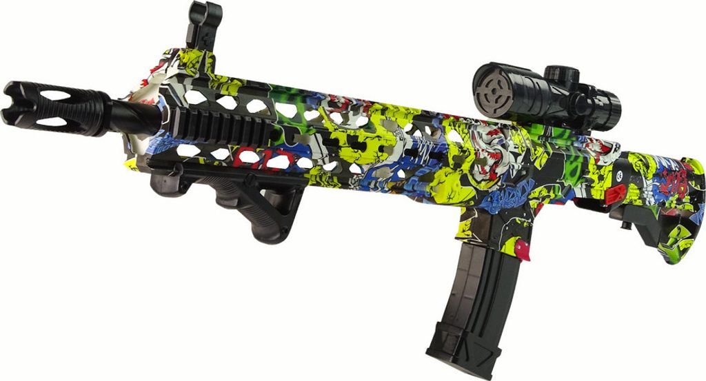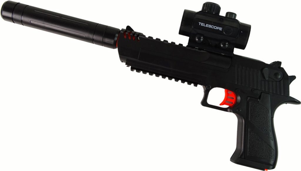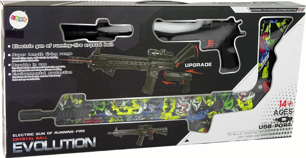 Tato sada zbraní poskytuje realistický zážitek a mnoho pokročilých funkcí, což z ní dělá fascinující dárek pro vojenské nadšence. Rozměry zbraně jsou: 40 cm x 19 cm x 3 cm a puška: 79 cm x 29 cm x 5 cm.