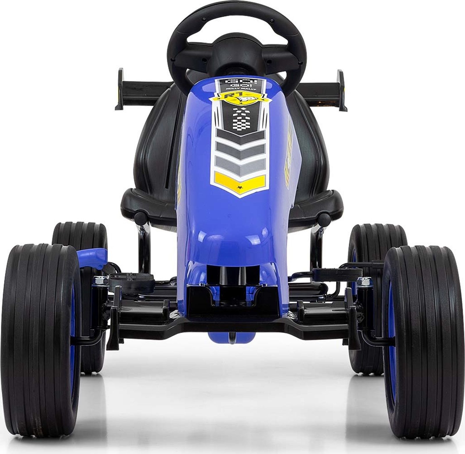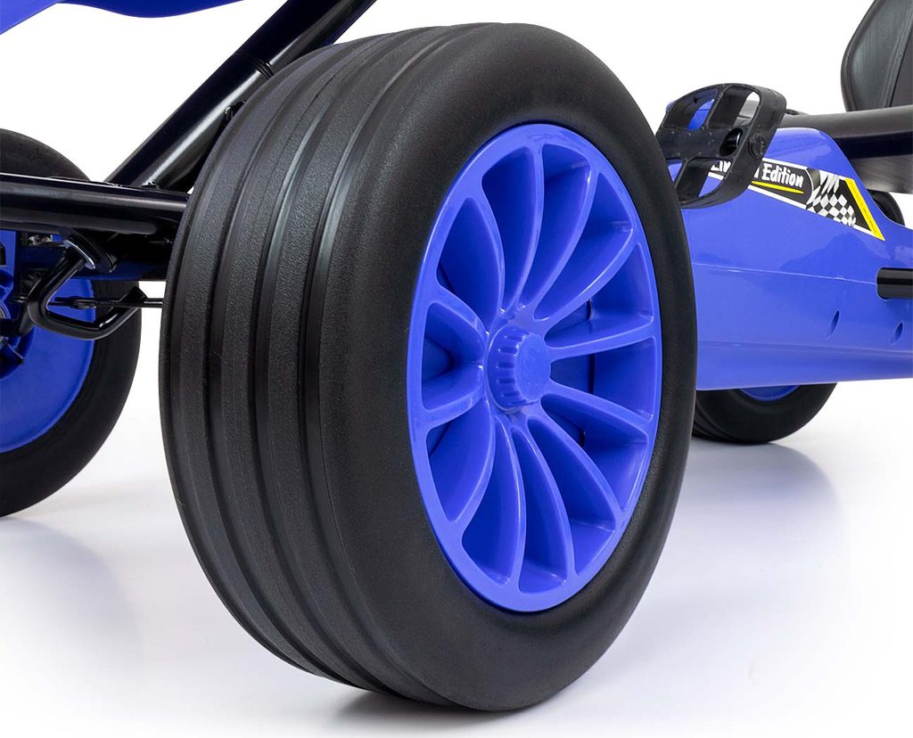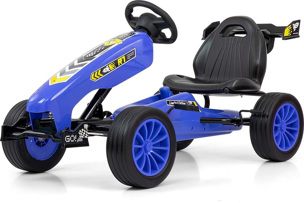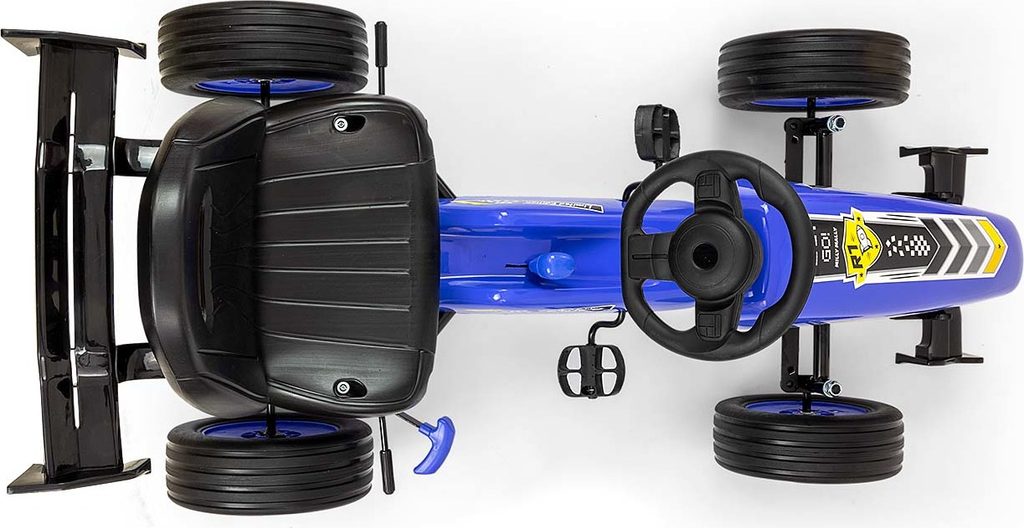 TECHNICKÉ ÚDAJE: - Celková výška: 60 cm - Celková šířka: 59 cm - Celková délka: 123 cm - Výška k sedadlu: 30 cm - Šířka sedadla: 37 cm - Hloubka sedadla: 21 cm - Šířka opěradla: 33 cm - Výška opěradla: 26 cm - Šířka volantu: 21 cm - Výška od země po spodní okraj volantu: 45 cm - Poloha 1: Vzdálenost od okraje sedadla k pedálu (maximální vzdálenost): 29,5 cm - Poloha 2: Vzdálenost od okraje sedadla k pedálu (maximální vzdálenost): 32,5 cm - Vzdálenost od opěradla k volantu poz. 1: 49 cm , poz. 2: 52 cm - Rozvor: 75 cm - Průměr kol: 25 cm - Šířka pneumatiky: 9 cm - Šířka předního spoileru: 30 cm - Šířka zadního spoileru: 40 cm - Rozměry pedálu: 7 x 9 cm - Tloušťka pedálu: 2 cm