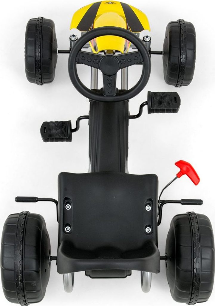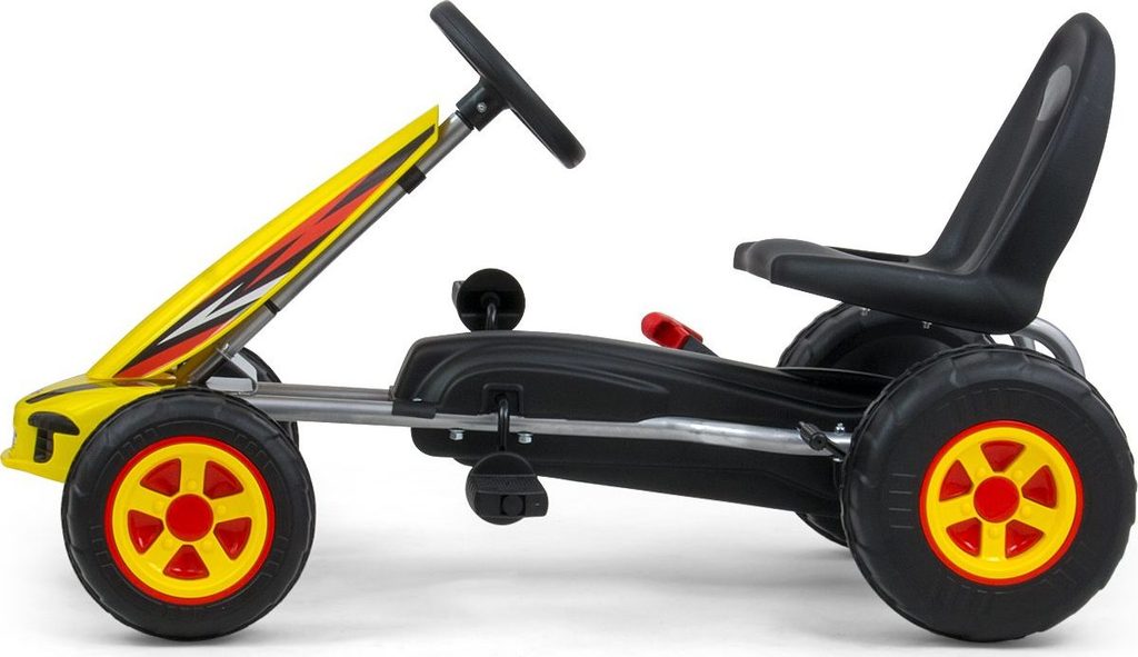 Šlapací motokára Viper má lehkou kovovou konstrukci a díky velkým plastovým kolům umožňuje pohodlnou jízdu i na nerovném povrchu. Pevný rám je navíc opatřen dodatečnou výztuží. Ruční brzda zajišťuje bezpečné zastavení. Vzdálenost sportovně tvarovaného sedadla lze nastavit od volantu ve dvou stupních. Díky možnosti nastavení sedadla od volantu motokára "poroste" s vaším dítětem.