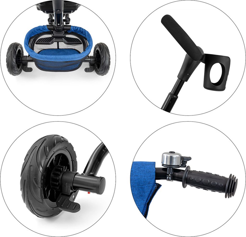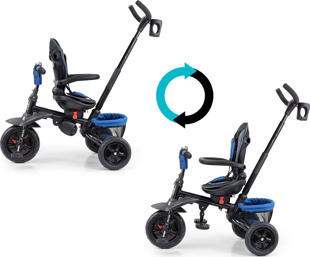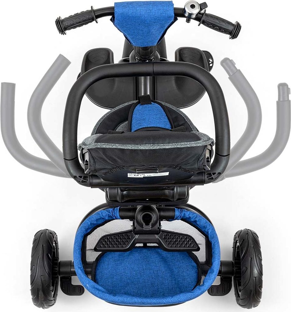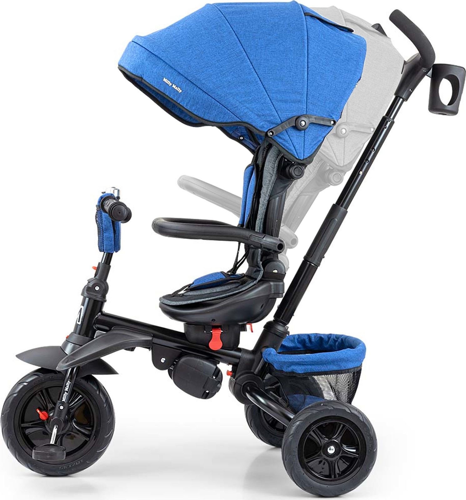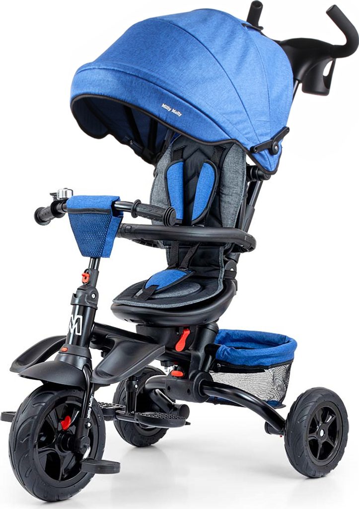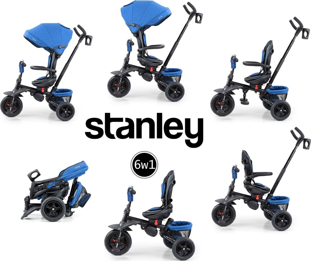 Dětská šlapací tříkolka 6v1 Milly Mally Stanley je typickým příkladem produktů GROW UP - roste zároveň s dítětem. Je vyrobena z kvalitních a odolných materiálů. Má moderní konstrukci, pohodlné a ergonomicky tvarované sedadlo, které je otočné o 360 stupňů, což umožní dítěti cestovat ve směru nebo proti směru jízdy. O pohodlí a bezpečí během jízdy se stará bariérka, tříbodové bezpečnostní pásy, pohodlné stupačky nebo gumová kola, které skvěle absorbují rázy a poskytují dobrou přilnavost. Tříkolku může ovládat jak dítě, tak i rodič pomocí nastavitelné rukojeti pro tlačení. Po odebrání vodící tyče, sklápěcí stříšky, která chrání před sluncem nebo ostatních komponent bude sloužit jako tříkolka. Tříkolku lze používat rovněž jako alternativu golfového kočárku. Pro uložení hraček nebo potřeb pro dítě je zde praktický úložný košík.