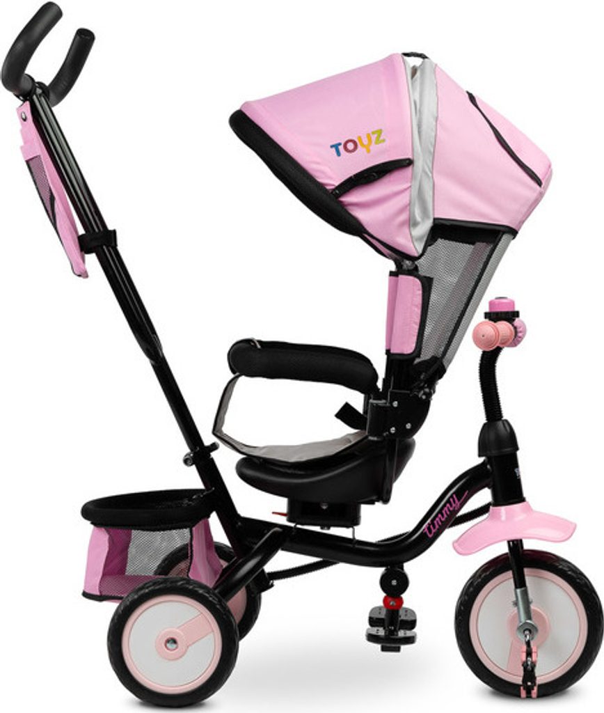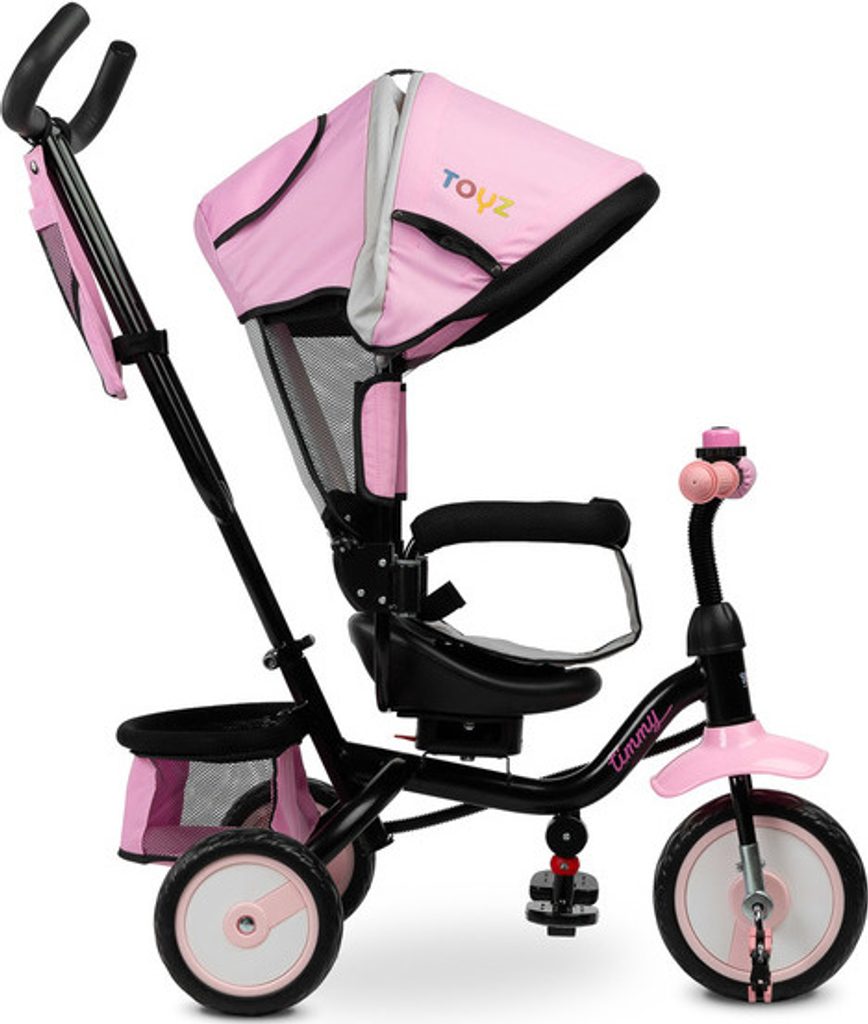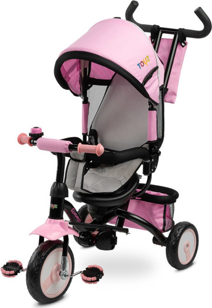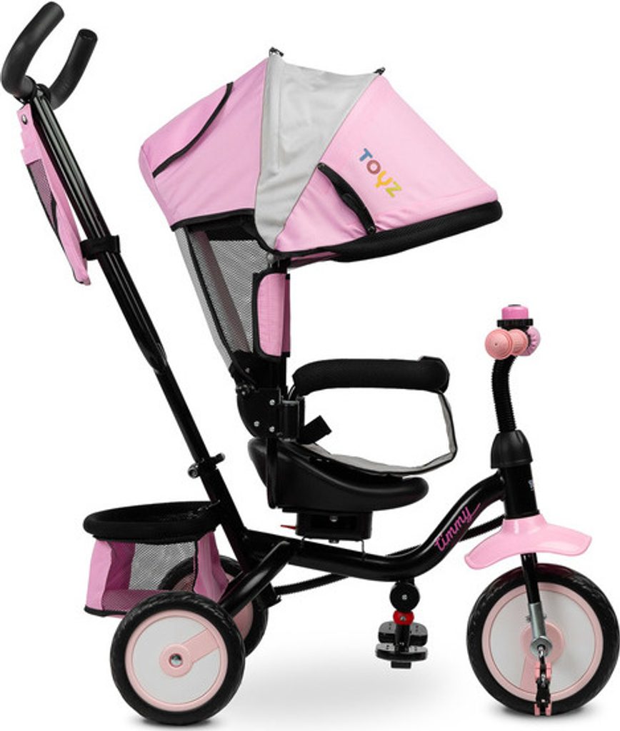 Dětská tříkolka Toyz Timmy má modulární konstrukci umožňující postupné rozebírání jednotlivých prvků spolu s rozvojem dovedností dítěte. Díky madlu k vedení a opěrce nohou lze Timmy použít jako alternativu kočárku. Pohodlné sedátko s mašlí a nastavitelným opěradlem a skládací kapucí zajistí vašemu dítěti pohodlí a bezpečí při každé procházce.