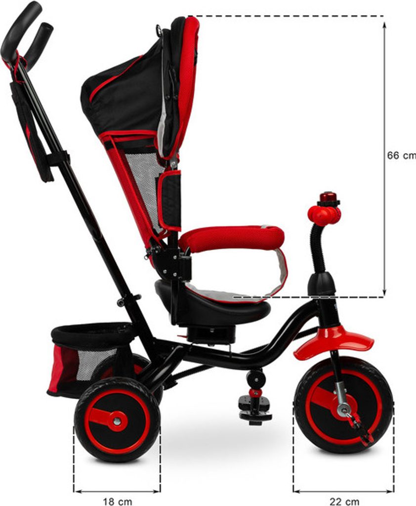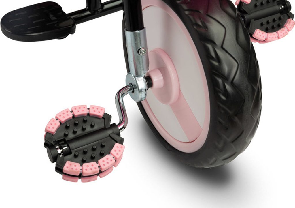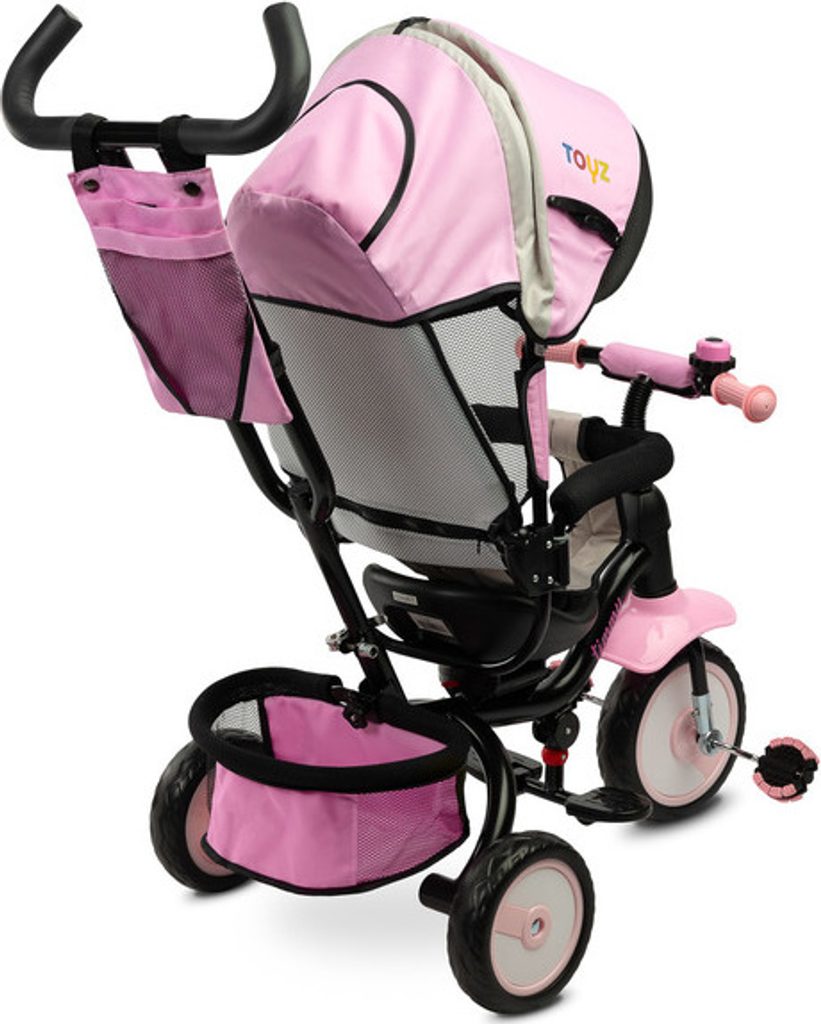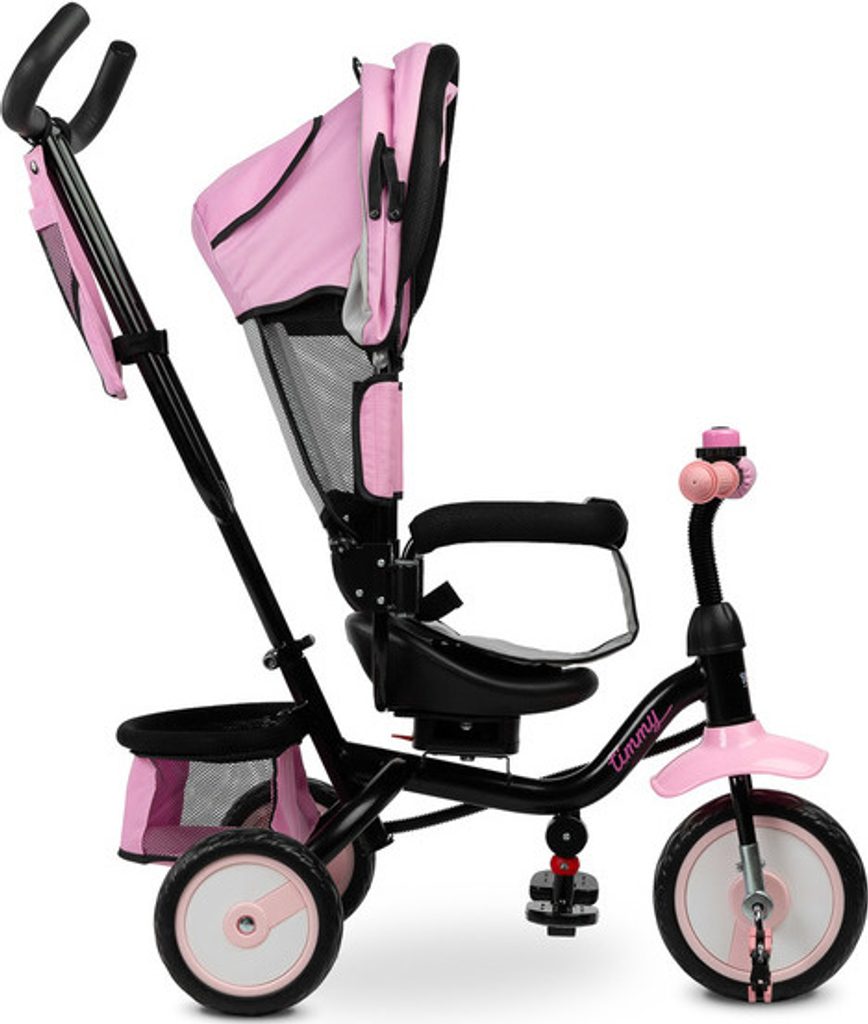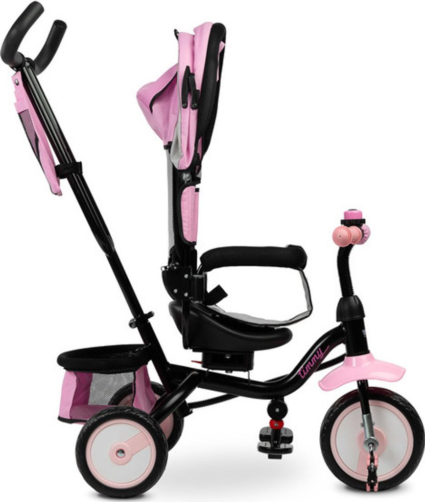 Dětská tříkolka Toyz Timmy má modulární konstrukci umožňující postupné rozebírání jednotlivých prvků spolu s rozvojem dovedností dítěte. Díky madlu k vedení a opěrce nohou lze Timmy použít jako alternativu kočárku. Pohodlné sedátko s mašlí a nastavitelným opěradlem a skládací kapucí zajistí vašemu dítěti pohodlí a bezpečí při každé procházce.