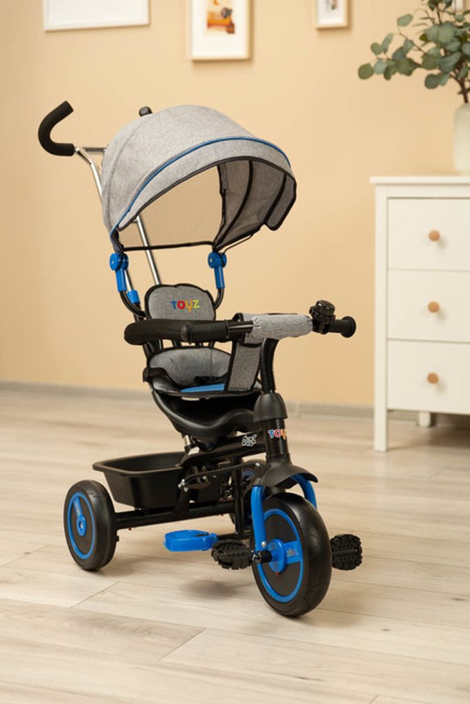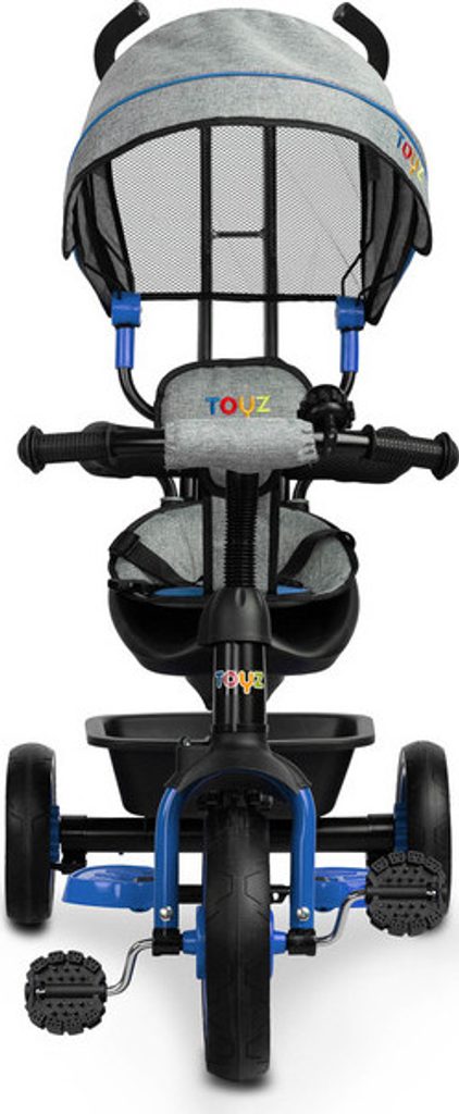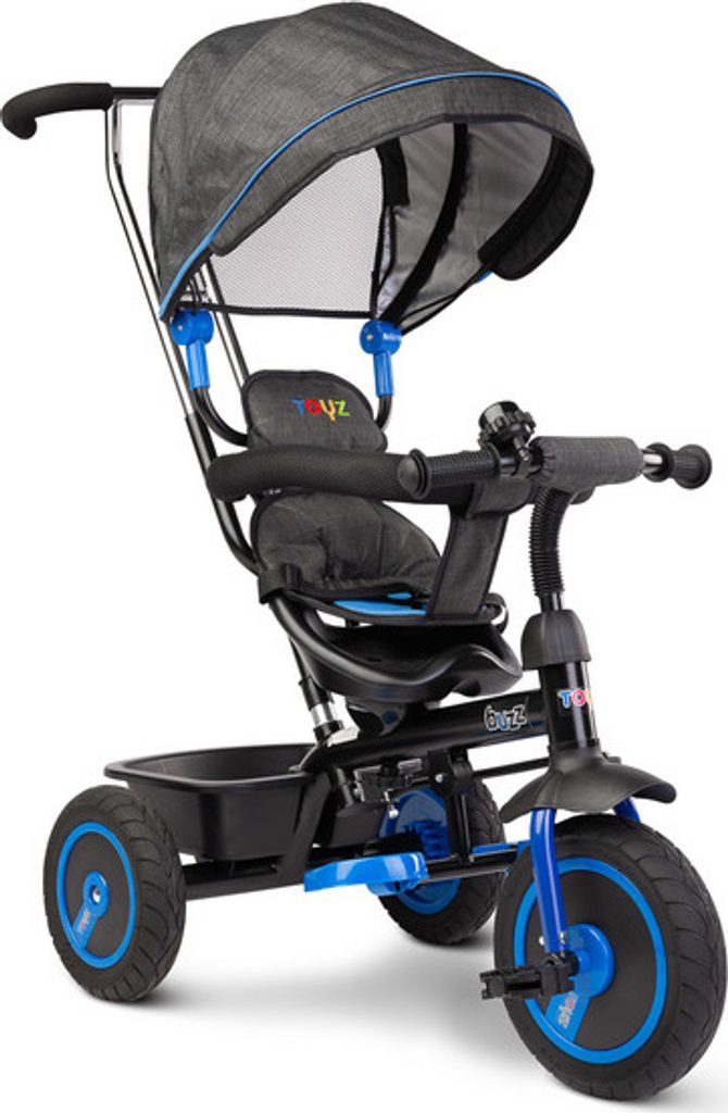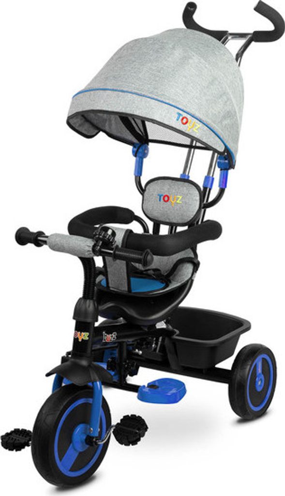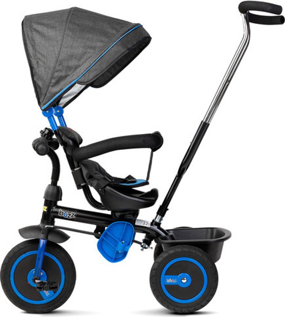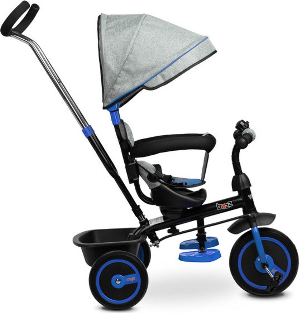 Třikolka BUZZ je jedním z našich mnoha inovativních řešení, které kombinují tříkolku s kočárkem. Třikolka je vybavená pásy a velkou, skládací stříškou, která chrání batole před sluncem. Do košíku vzadu můžete vložit různé drobnosti a hračky pro batolata nebo nákupní tašku.