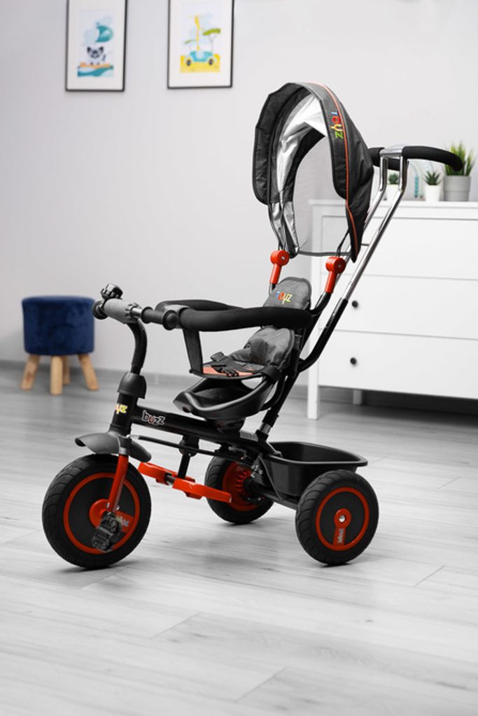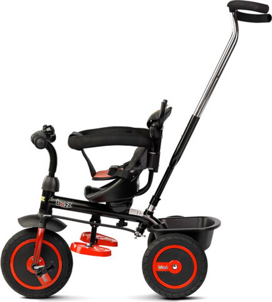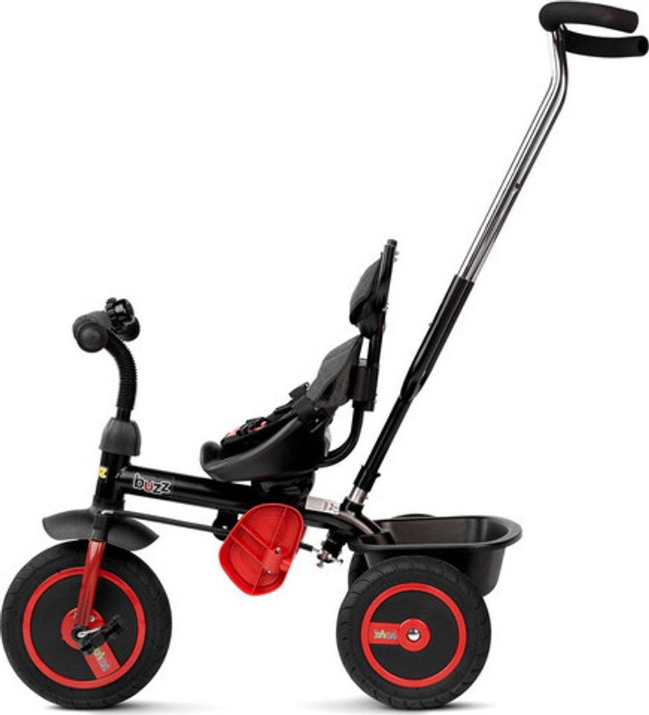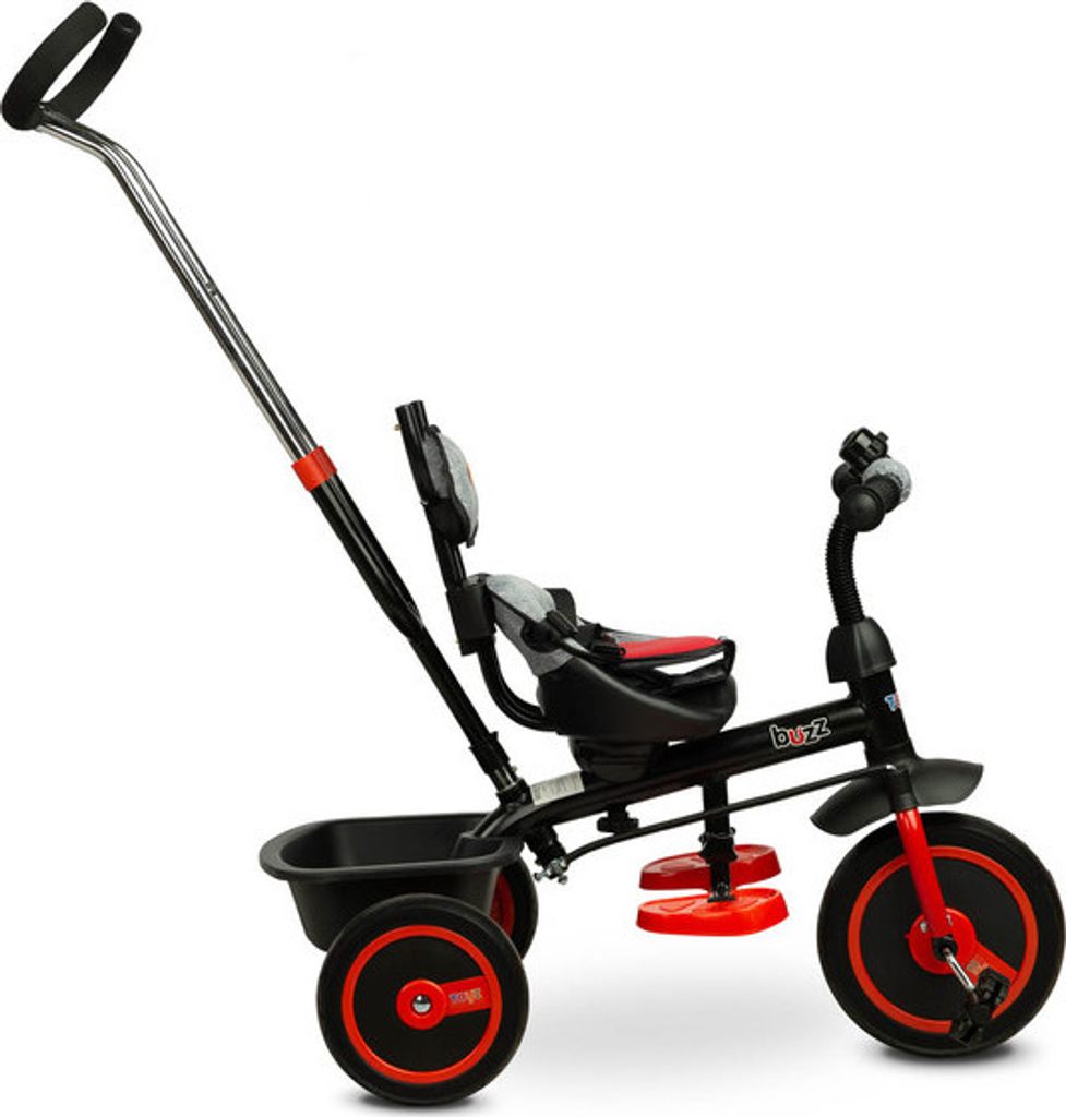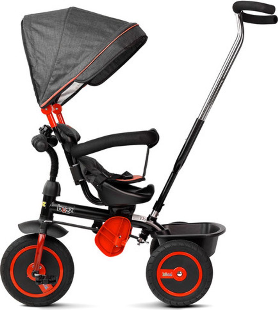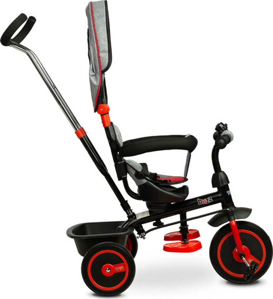 Třikolka BUZZ je jedním z našich mnoha inovativních řešení, které kombinují tříkolku s kočárkem. Třikolka je vybavená pásy a velkou, skládací stříškou, která chrání batole před sluncem. Do košíku vzadu můžete vložit různé drobnosti a hračky pro batolata nebo nákupní tašku.