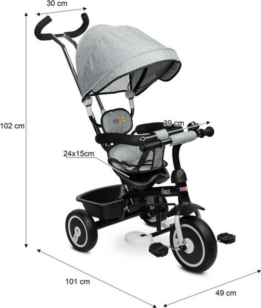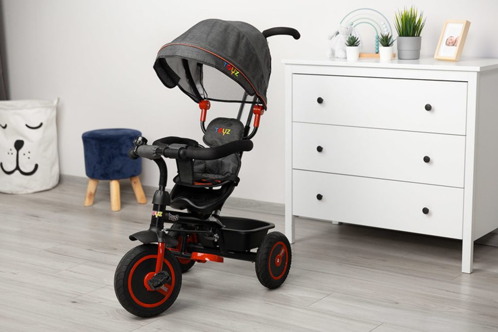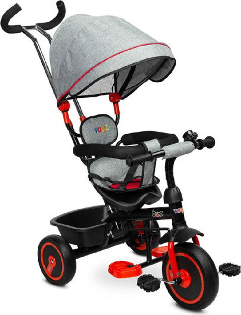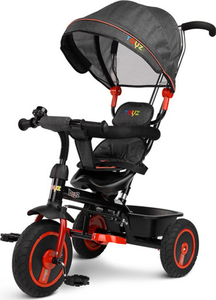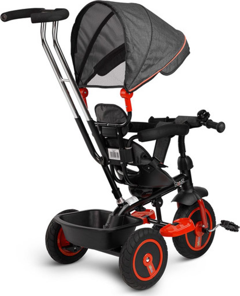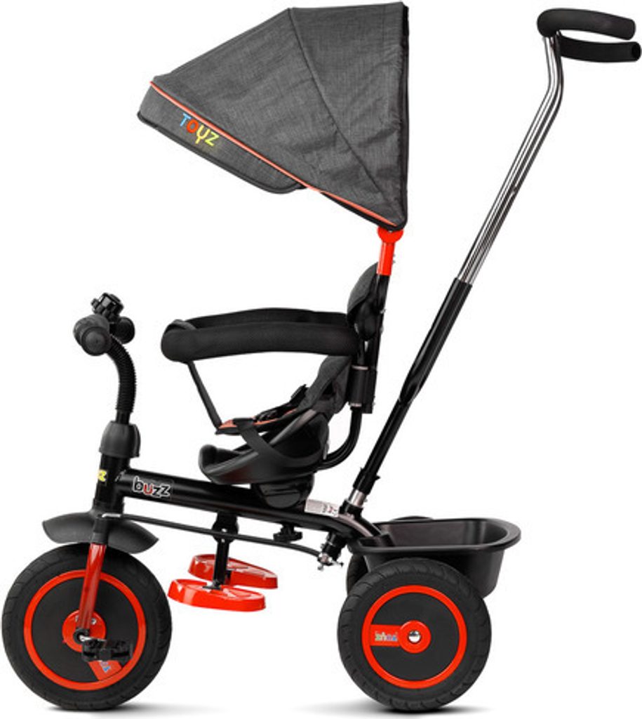 Třikolka BUZZ je jedním z našich mnoha inovativních řešení, které kombinují tříkolku s kočárkem. Třikolka je vybavená pásy a velkou, skládací stříškou, která chrání batole před sluncem. Do košíku vzadu můžete vložit různé drobnosti a hračky pro batolata nebo nákupní tašku.