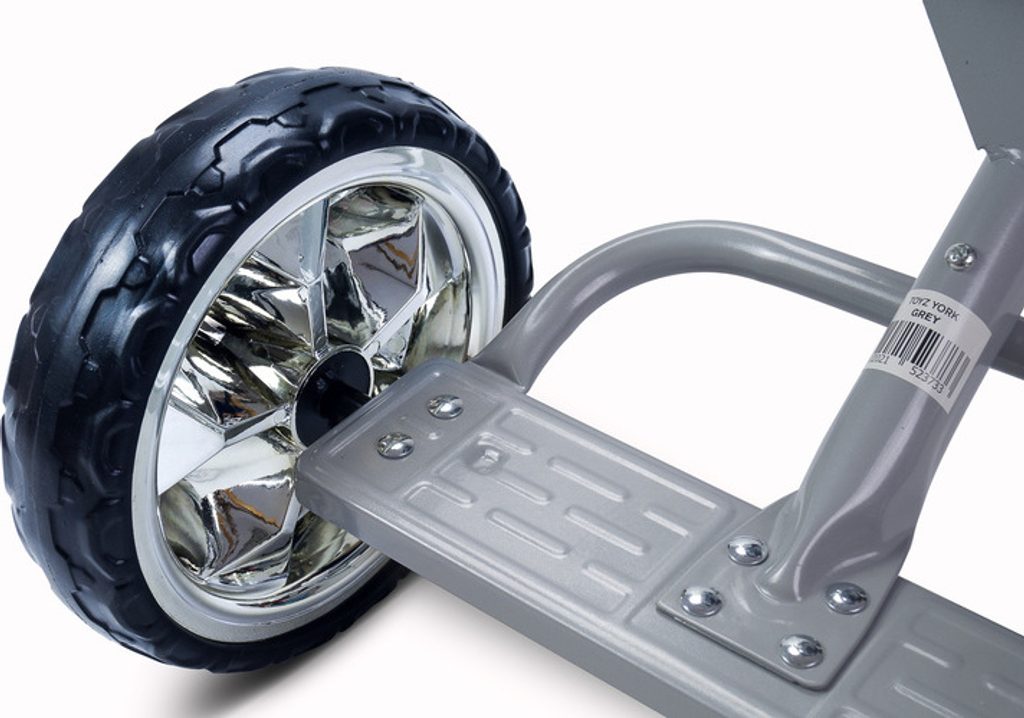 - nízká hmotnost - tříkolka York je založena na lehkém kovovém rámu a má pěnová kola