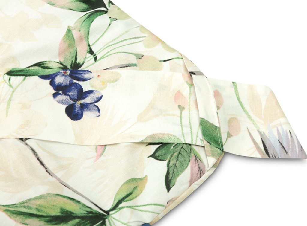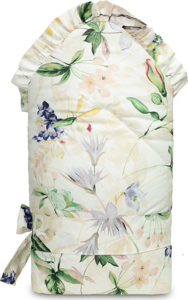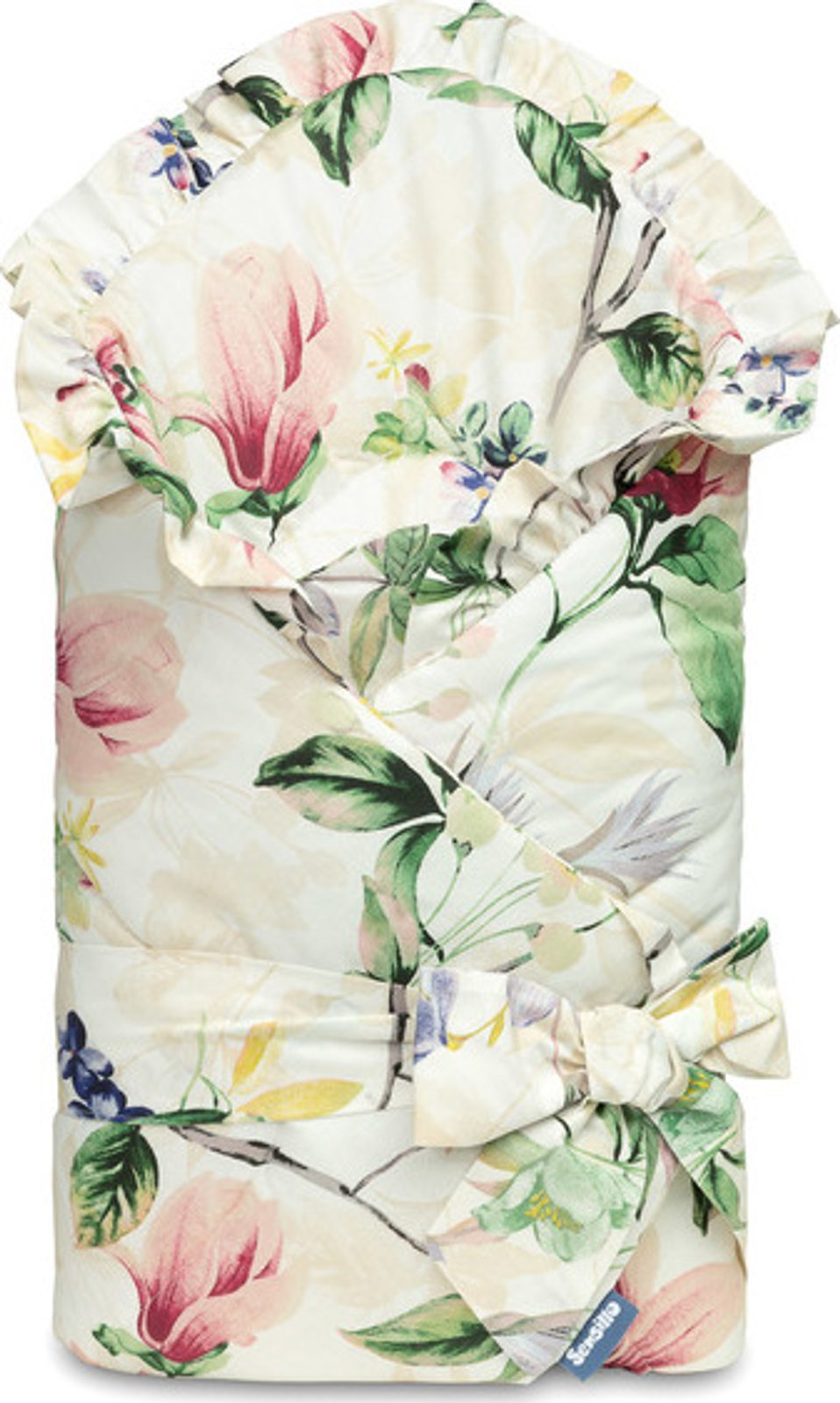 Oboustranná dětská zavinovačka s volánkem byla vytvořena s ohledem na novorozence a kojence. Uzlové zapínání se širokou bavlněnou stuhou umožňuje pohodlné držení dítěte při krmení a uspávání. Po rozložení lze zavinovačku použít jako peřinku do postýlky nebo kočárku. Lze ji použít také jako podložku na hraní. Je vyrobena ze 100% bavlny. Výplň tvoří silikonové nadýchané rouno. Závěrečnou tečkou je vkusný volánek.