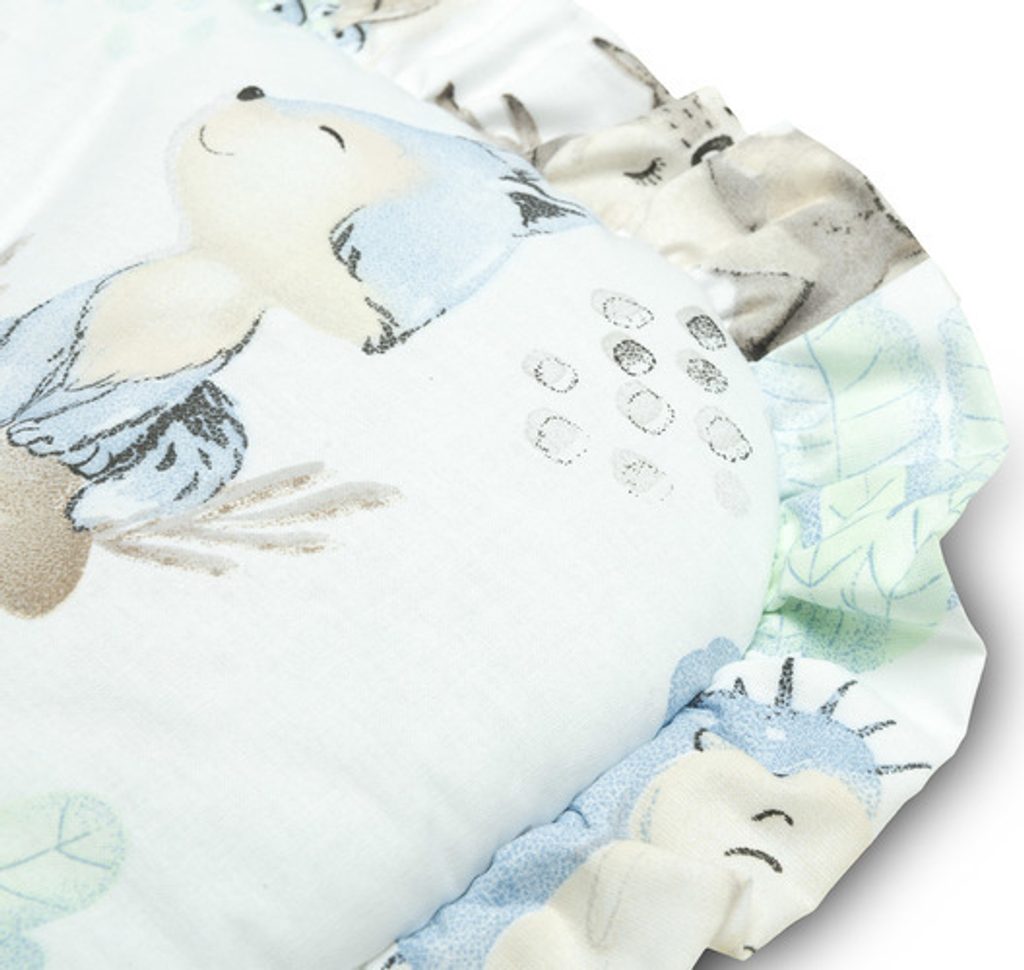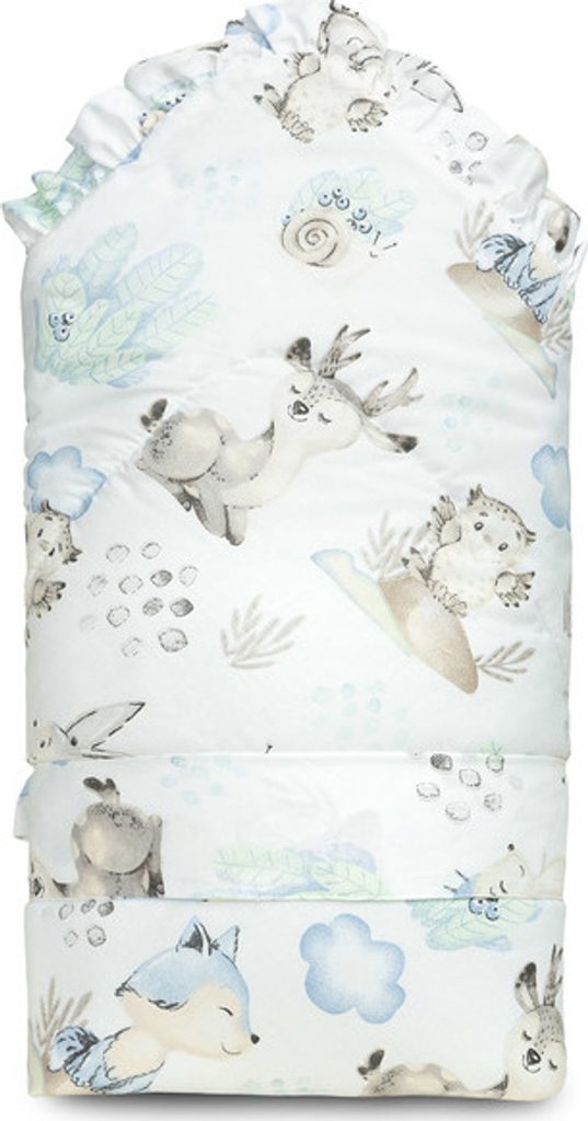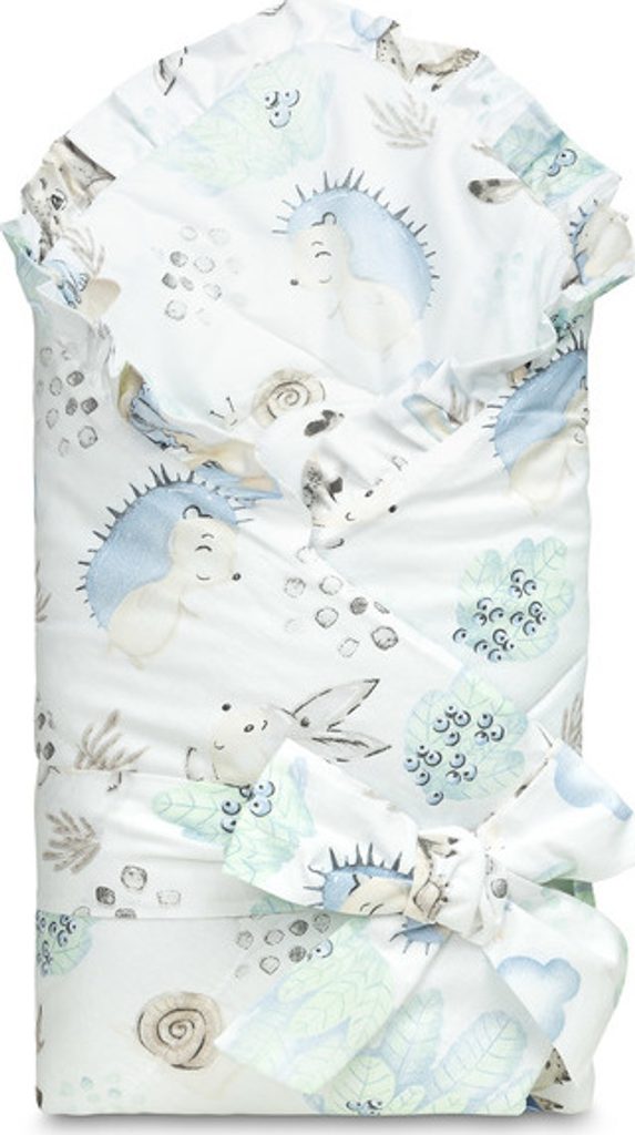 Oboustranná dětská zavinovačka s volánkem byla vytvořena s ohledem na novorozence a kojence. Uzlové zapínání se širokou bavlněnou stuhou umožňuje pohodlné držení dítěte při krmení a uspávání. Po rozložení lze zavinovačku použít jako peřinku do postýlky nebo kočárku. Lze ji použít také jako podložku na hraní. Je vyrobena ze 100% bavlny. Výplň tvoří silikonové nadýchané rouno. Závěrečnou tečkou je vkusný volánek.