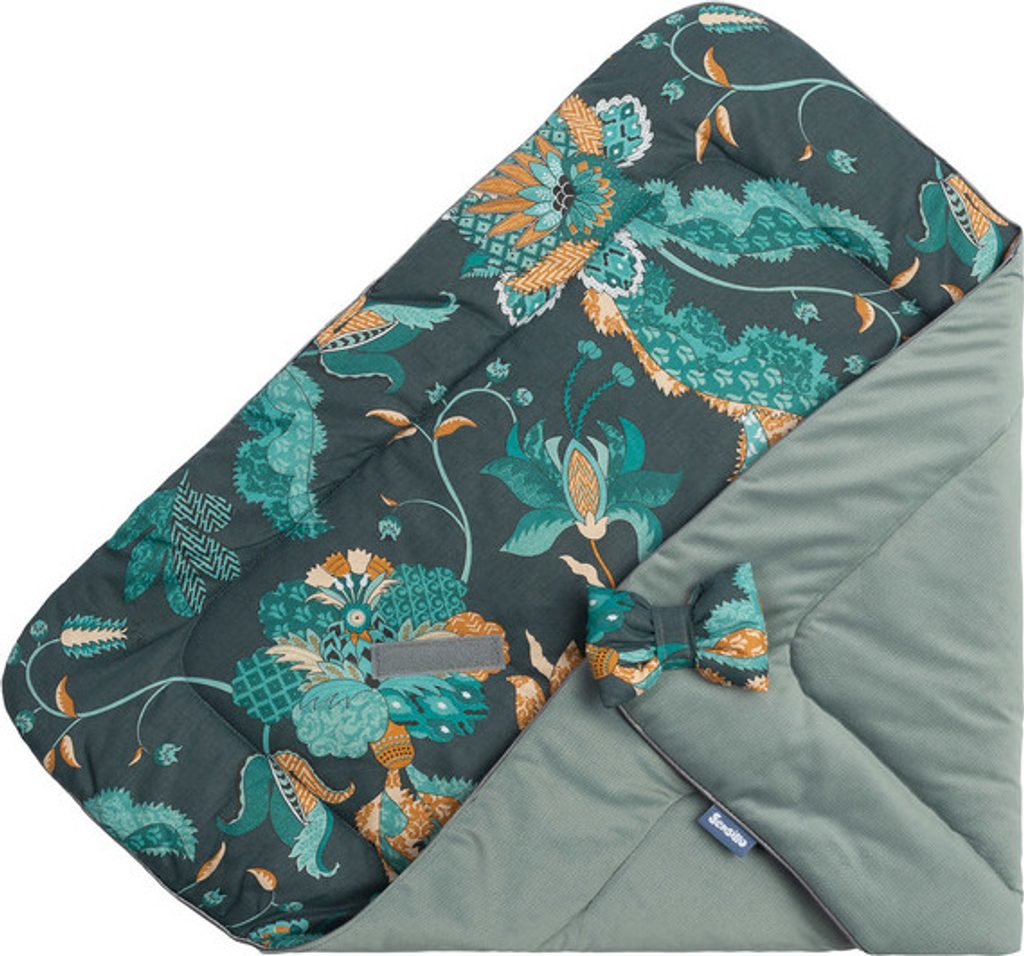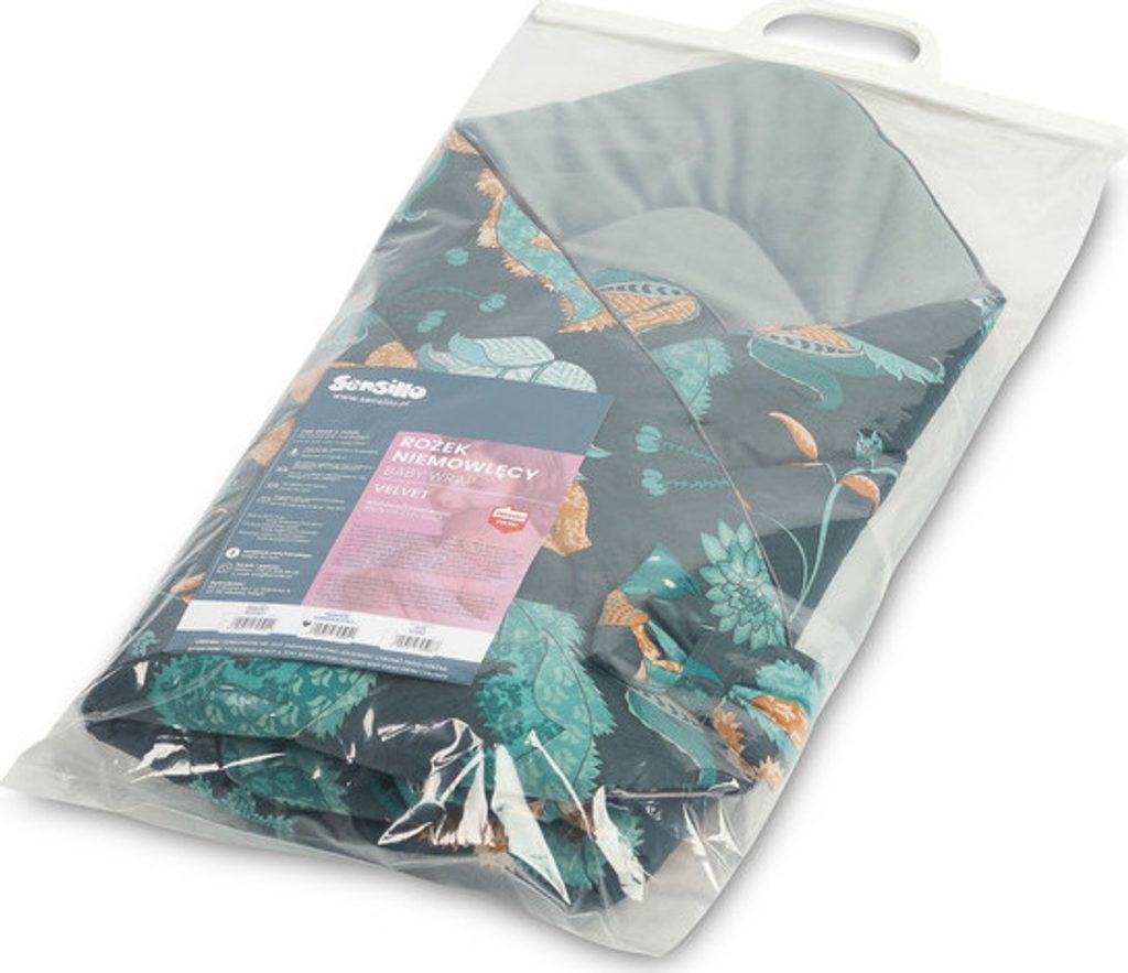 Oboustranná dětská zavinovačka Velvet byla vytvořena s ohledem na novorozence a kojence. Zapínání na suchý zip umožňuje pohodlné držení miminka při krmení a usínání. Po rozložení lze zavinovačku s úspěchem použít jako peřinku do postýlky nebo kočárku. Dá se použít i jako podložka na hraní. Je vyrobena ze 100% bavlny a jemné, jemné prošívané sametové látky. Výplň kornoutu je antialergická nadýchaná silikonová netkaná textilie. Vysokou kvalitu zpracování podtrhuje estetická vložka