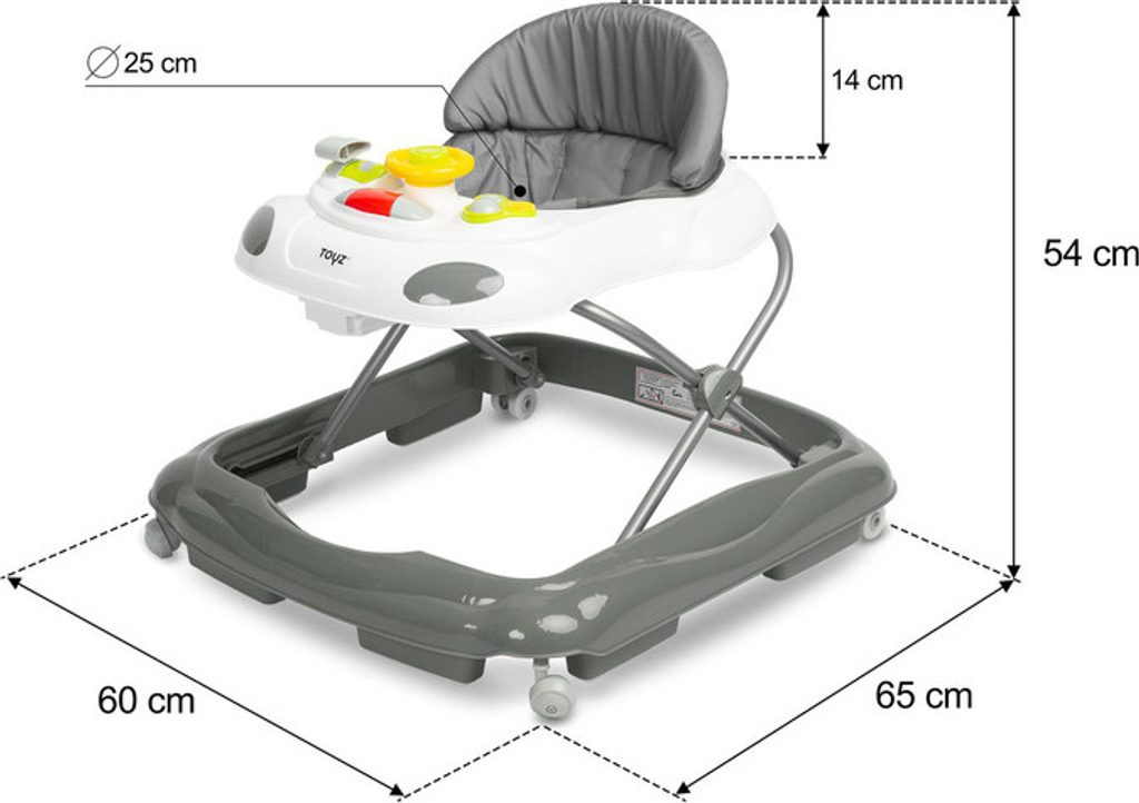 Cario je chodítko značky TOYZ, které v batoleti probudí lásku k motorismu. Chodítko vypadá jako auto. Batole se v něm bude cítit pohodlně díky měkkému opěradlu v sedadle. Nastavení výšky podle výšky dítěte je možné díky speciální konstrukci a stisknutím tlačítka můžete snadno nastavit výšku horní části. Barevný multimediální panel zaměstná pozornost vašeho dítěte a podpoří správný vývoj vašeho drobečka.