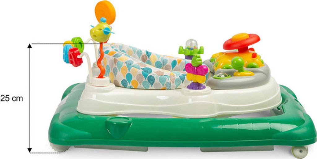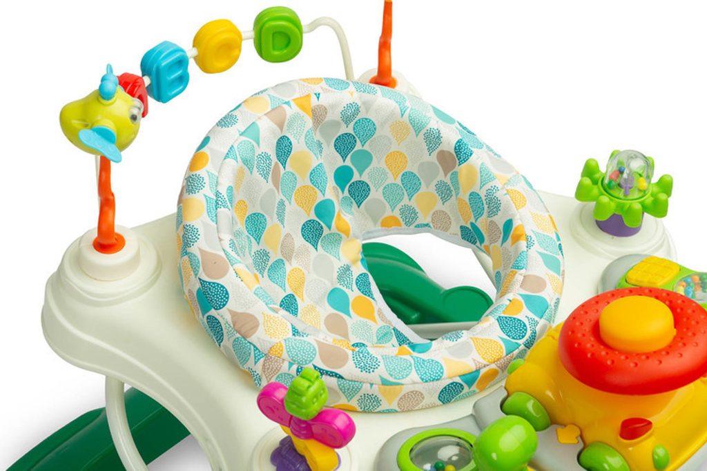 Co ho charakterizuje? Bezpečnost především. Speciální konstrukce umožňuje mimo jiné: nastavení polohy sedáku na výšku dítěte tak, aby se chodidla volně dotýkala země. Za druhé pohodlí - zádová opěrka chodítka Stepp má tvar anatomicky přizpůsobený tělu. Za třetí je to zábava – otočné sedadlo umožňuje přístup k mnoha unikátním hračkám. Na své si přijdou i nejmenší atrakce, které nabízí naučný panel. Zvuky a světla přitahují pozornost a rozvíjejí smysly. Mini volant, klakson a další doplňky jsou účinným lékem na nudu.