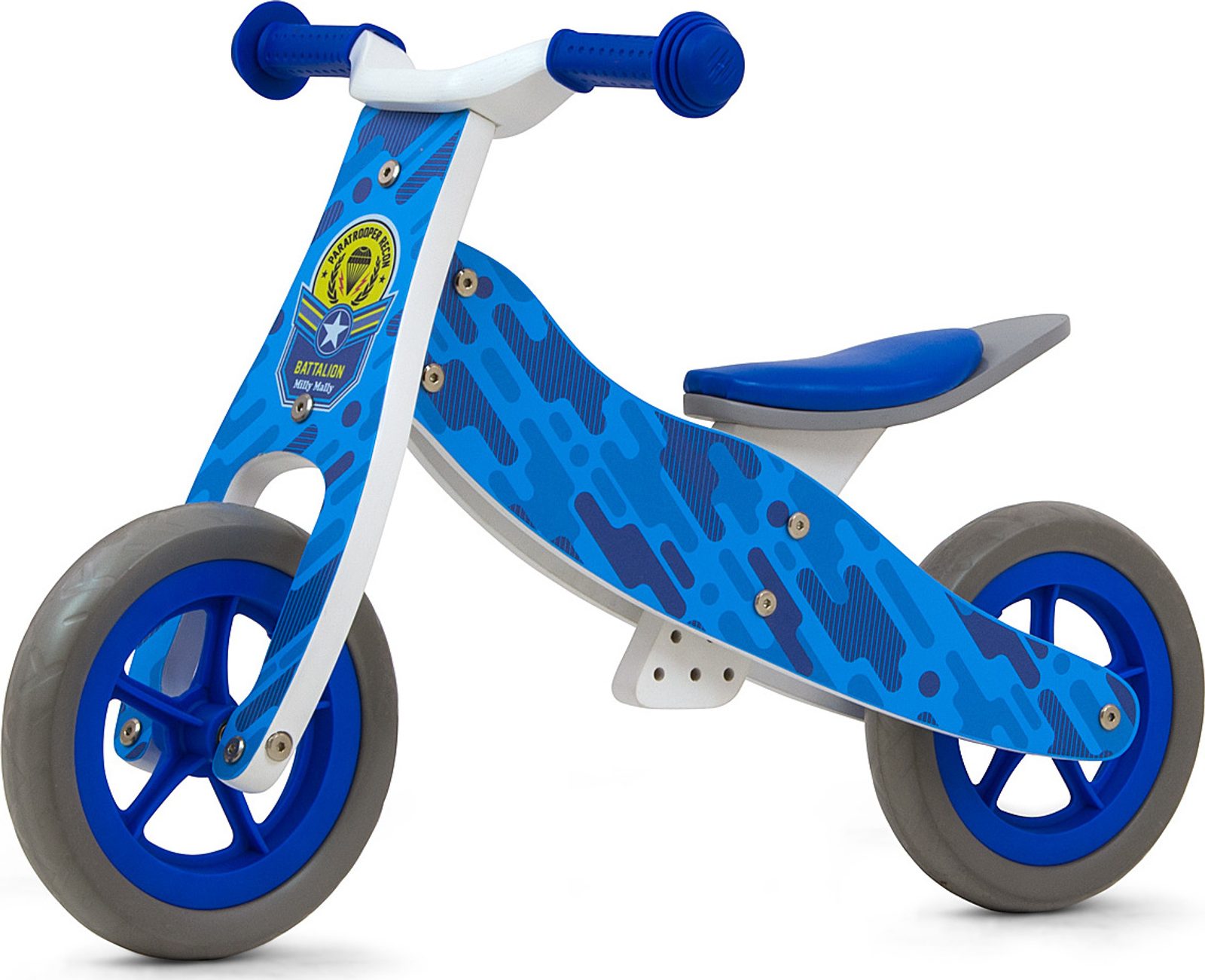 Dětské multifunkční dřevěné odrážedlo Milly Mally Look 2v1 je ideálním řešením pro děti, které se právě začínají učí jezdit na kole a přitom ještě nejsou schopné udržet rovnováhu na dvou kolech. Hlavní výhodou odrážedla Look je, že tříkolku snadno a rychle předěláte na odrážedlo na dvou kolech. Je vyrobeno z pevného dřeva a ozdobeno krásnými veselými barvami a obrázky. Pěnová kola zajistí pohodlí během jízdy a neunaví vašeho malého závodníka. Dostatečný rozvor kol poskytuje extrémní stabilitu, bezpečnost a pohodlí doma i venku. Měkké a neklouzavé rukojeti zajistí pevné držení řídítek. Nastavitelná výška sedadla umožní přizpůsobit odrážedlo potřebám dítěte. Krásné multifunkčí odrážedlo padne do oka jak holčičkám tak chlapečkům a skvěle je připraví pro jízdu na kole bez nutnosti montáže bočních koleček.