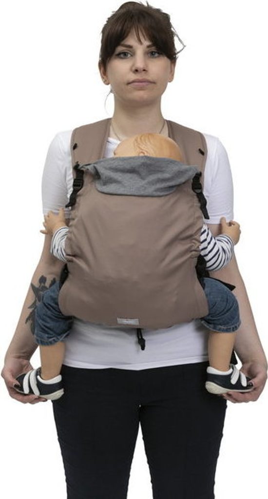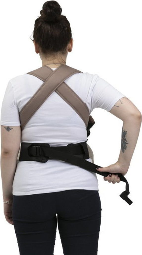 Nosítko má polstrované popruhy, které se kříží přes záda a rovnoměrně rozkládají váhu dítěte, v kombinaci s polstrovaným bederním pásem, který vhodně odvádí váhu.