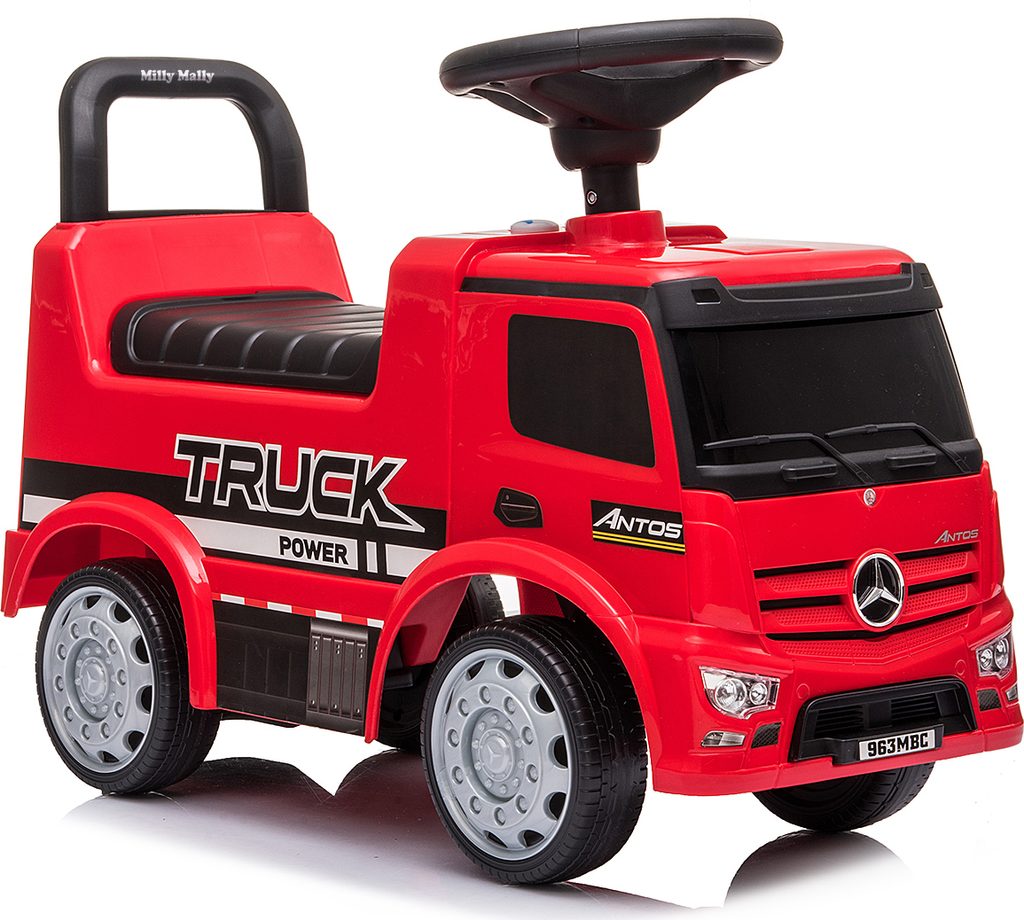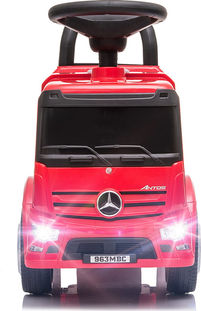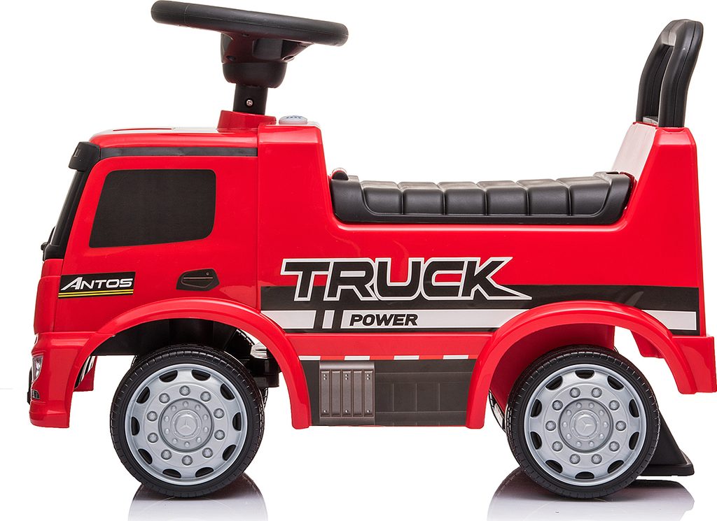 Licencované vozítko MERCEDES ANTOS bylo vyrobeno z nejkvalitnějších materiálů. Multifunkčnost jezdítka zajistí, že se s ním dítě rychle neomrzí a hrou bude rozvíjet své manuální dovednosti a motorické schopnosti. Další funkcí ANTOSu je interaktivní volant s pískátkem, který v kombinaci s dalšími dvěma tlačítky pro zvuk a světlo (umístěnými na palubní desce) učiní hru ještě zajímavější! Vozidlo má otočná přední kola. Velmi snadno se sestavuje, je stabilní a bezpečné. Je vybaveno ochranou proti převrácení. Má také široké a pohodlné sedadlo a vysokou opěrku zad. Nabízíme i další verze tohoto modelu: Hasičské a policejní - navíc vybavené světelnou a zvukovou signalizací.