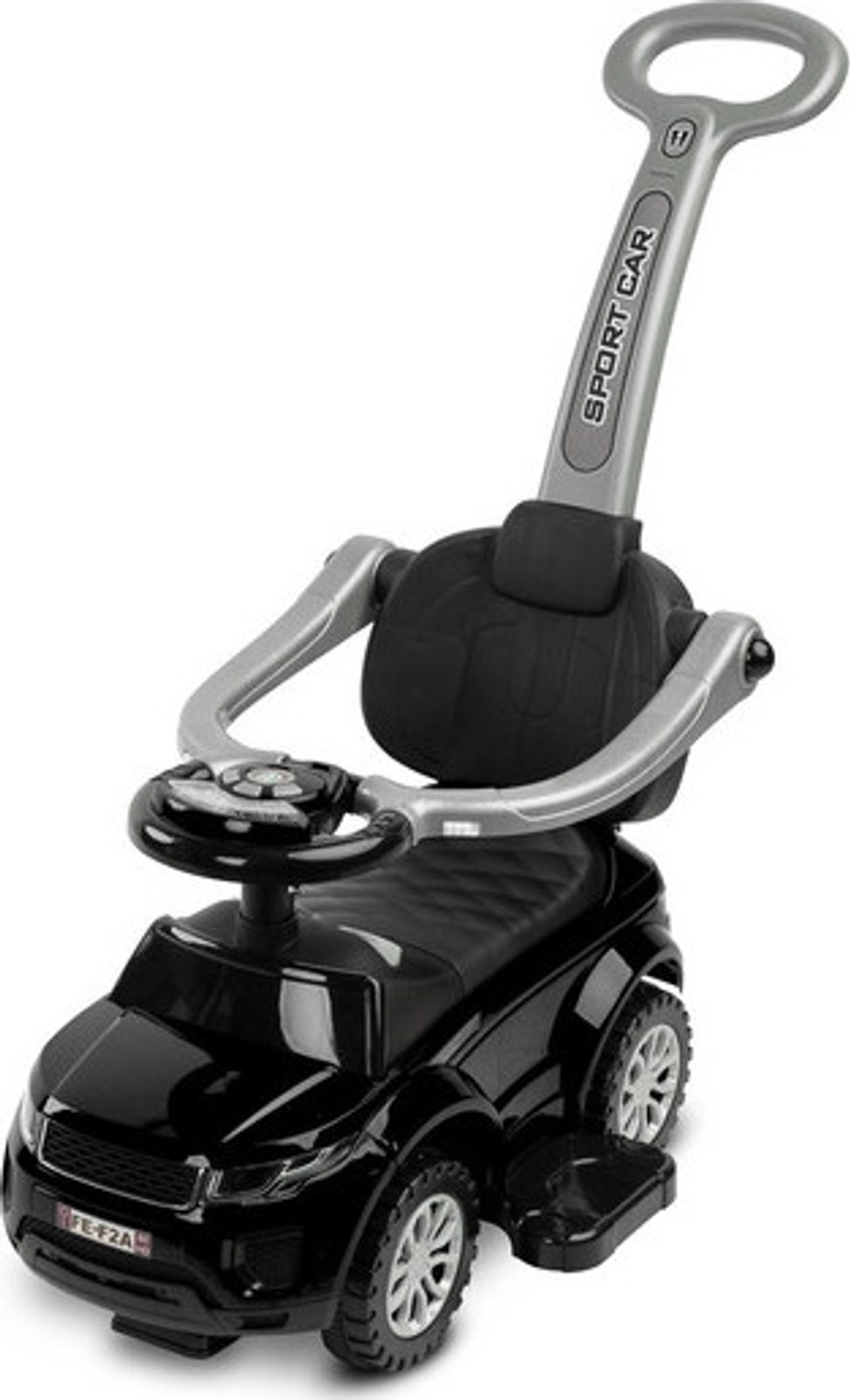 Odstrkovadlo Sport Car od Toyz je nepostradatelným společníkem na procházky. Díky svému designu se dá snadno přizpůsobit potřebám dítěte. Může to být odstrkovadlo, chodítko i typické auto - stačí demontovat příslušné prvky. Odstrkovadlo má bateriový volant se světly a zvuky a také velmi užitečný úložný prostor pod sedadlem. Zvýšené zábradlí chrání dítě před pádem a také blokuje přední kola v otáčení.