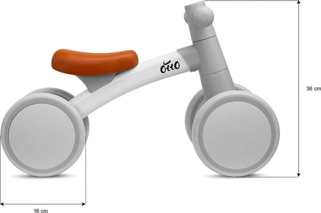 OTTO je balanční kolo pro nejmenší, se kterým bude učení držení rovnováhy skvělou zábavou na procházkách s rodiči. Jeho kovový rám zajišťuje pevnost konstrukce a kola z pružné EVA pěny zaručují jízdní komfort. OTTO se velmi snadno sestavuje a svým neobvyklým vzhledem a zajímavým barevným provedením zaujme každého rodiče.
