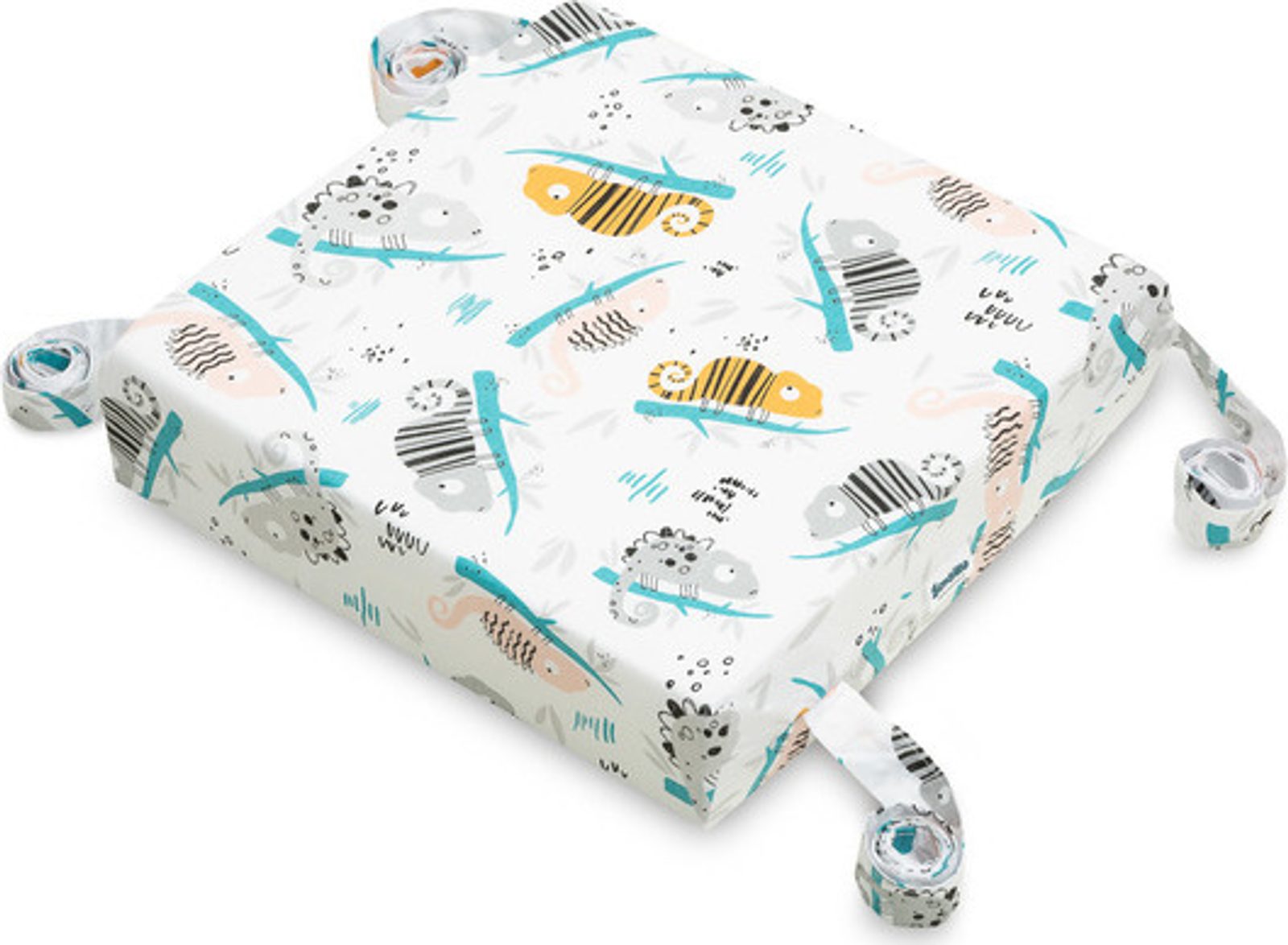 Díky univerzální velikosti (32 x 32 x 8 cm) se hodí na standardní židle. Sedátko je lehké a snadno jej vezmete kamkoli s sebou. Všité popruhy umožňují bezpečné a stabilní připevnění k židli.