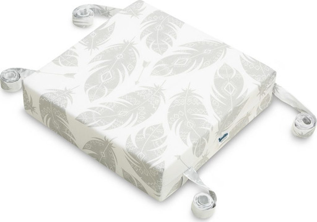 Díky univerzální velikosti (32 x 32 x 8 cm) se hodí na standardní židle. Sedátko je lehké a snadno jej vezmete kamkoli s sebou. Všité popruhy umožňují bezpečné a stabilní připevnění k židli.
