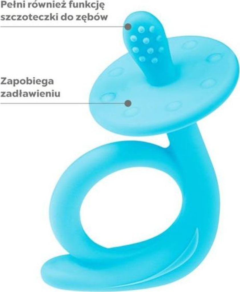 Kousátko funguje také jako zubní kartáček a speciálně navržený omezovač zabraňuje udušení. Živé barvy a tvar zvířátka malého jistě zaujmou.