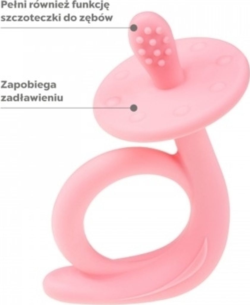 Kousátko funguje také jako zubní kartáček a speciálně navržený omezovač zabraňuje udušení. Živé barvy a tvar zvířátka malého jistě zaujmou.