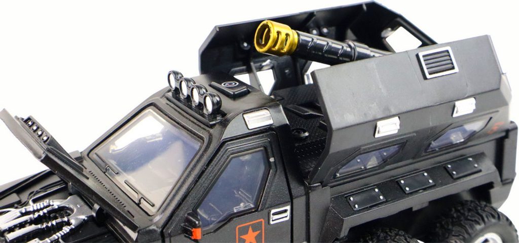Jedná se o působivé vozidlo s kanónem uvnitř, které vyniká svým realistickým vzhledem a dokonale reprodukovanými detaily. Je na setrvačník, má zvuky a světla. Rozměry auta jsou: 18 cm x 7 cm x 9,5 cm.