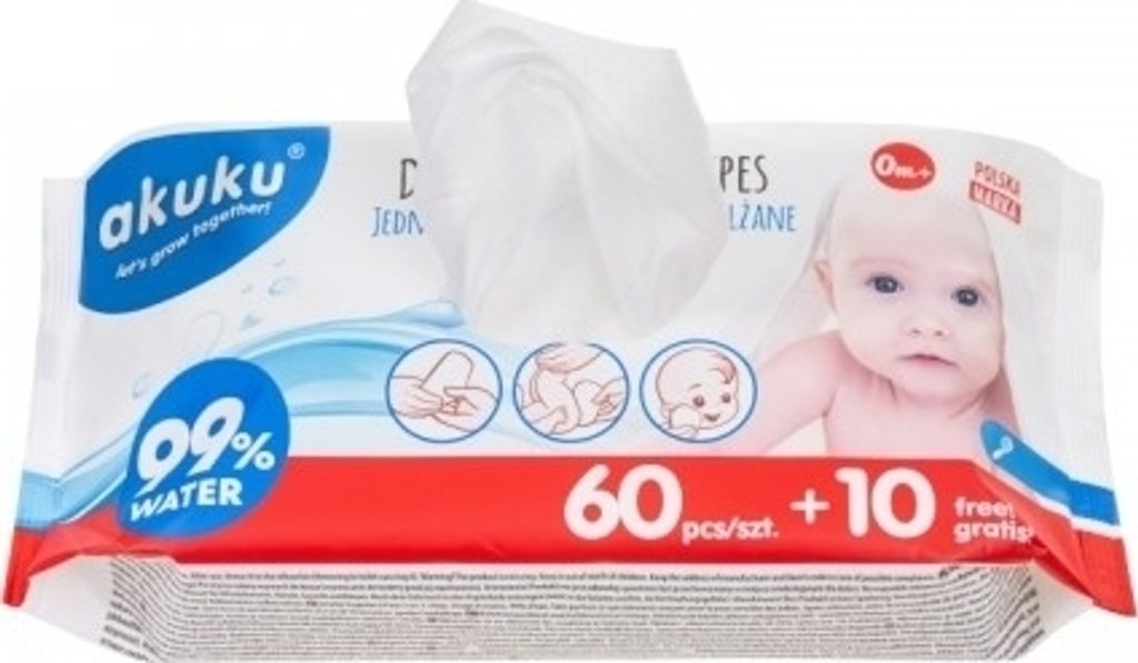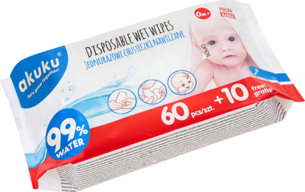 Jednorázové "akuku" ubrousky navlhčené 99% vodou. Zbývající 1 % zahrnuje glycerin, šťáva z listů aloe, kyselina citronová a iontové stříbro. Pomáhají chránit jemnou dětskou pokožku. Neobsahují alkohol ani parfemaci. Jsou zcela bezpečné pro jemnou pokožku novorozence. Mohou je používat i dospělí pro každodenní hygienu rukou a obličeje. Díky pohodlnému balení je můžete vzít s sebou na procházku i na výlet.
