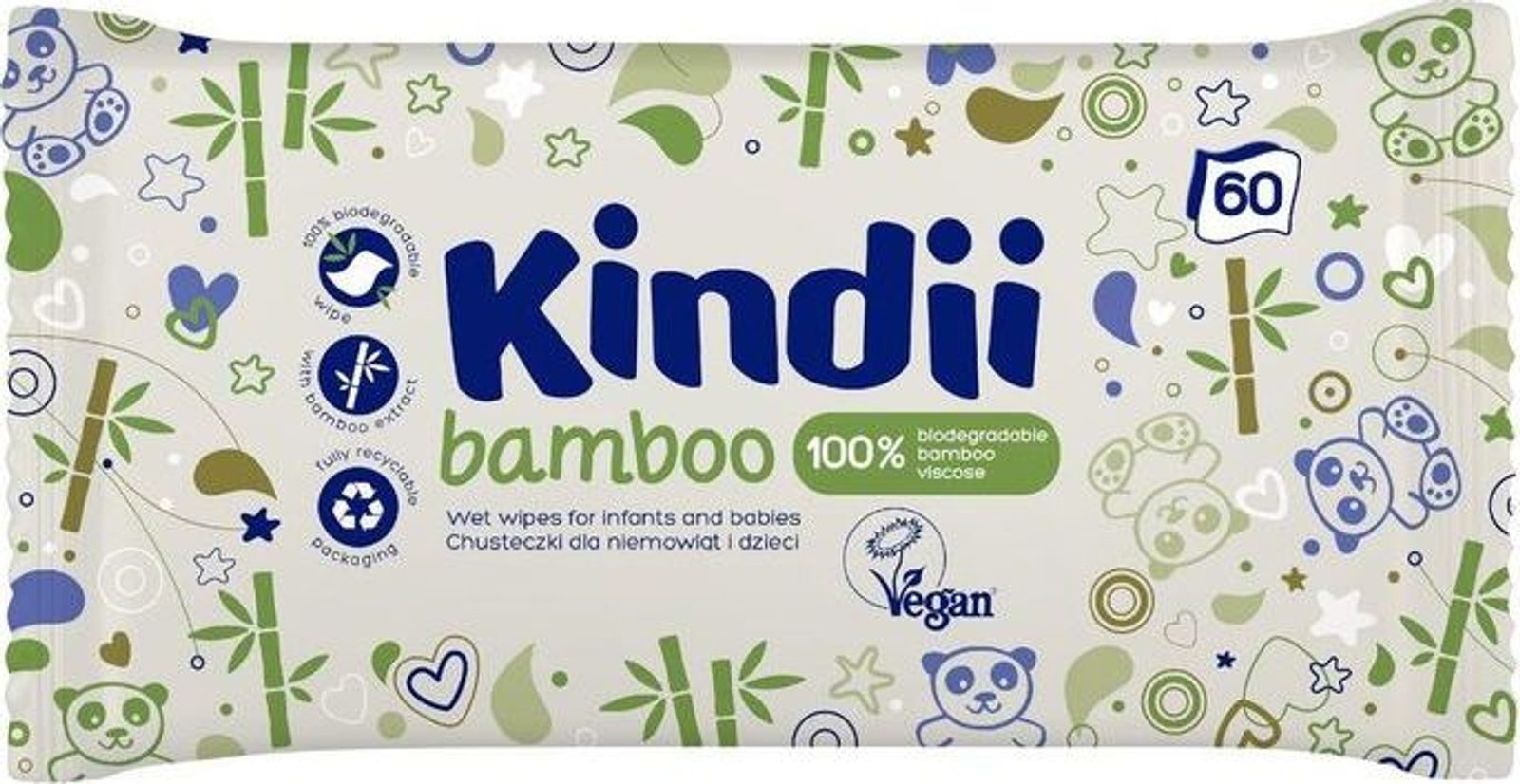 Kindii Dětské vlhčené ubrousky Natural balance 60 ks .