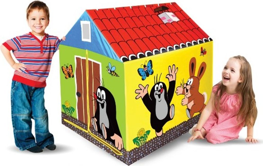 Dětský domek s motivem oblíbeného hrdiny Krtečka a jeho kamarádů. Domek mohou mít děti postavený v letních měsících nejen na zahradě, ale může zdobit i dětský pokoj. Do domečku se vejdou až dvě děti. Je vyroben z vanilového materiálu s plastovou konstrukcí.