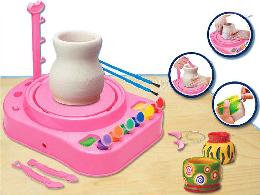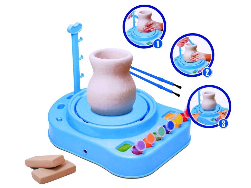 Dětský hrnčířský kruh Pottery Workshop na baterie je skvělá edukační hračka pro děti s doporučeným věkem od 8 let. Rychlost otáčení kruhu lze nastavit na rychlejší nebo pomalejší. Děti s jeho pomocí mohou vytvořit svá první keramická díla a poté si je mohou ozdobit barvičkami dle vlastních představ. Děti si tak hravou formou zlepšují své dovednosti a navíc mohou vytvářet dárky pro své blízké.