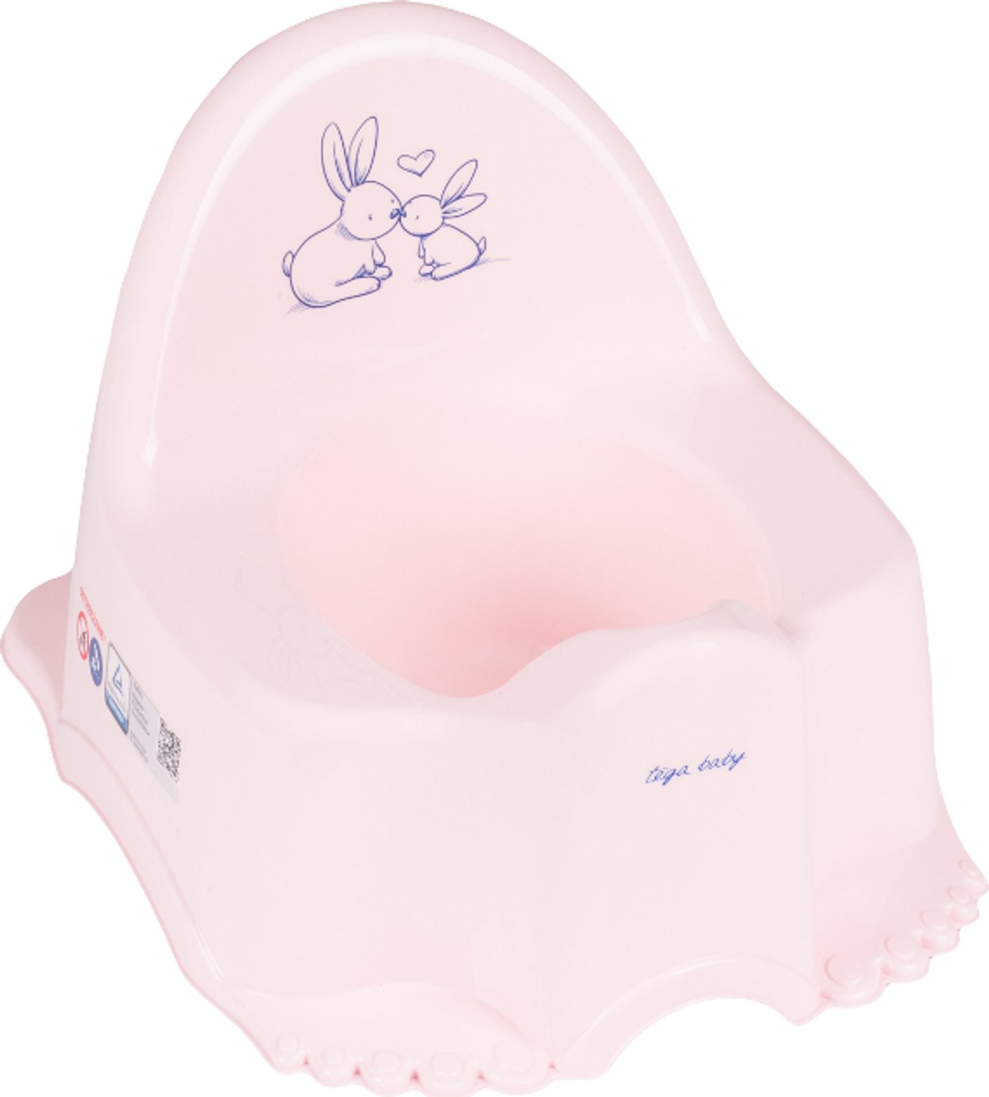 Dětský nočník Bunny s obrázkem králíčků a v krásných pastelových barvach. Je lehký, kompaktní a díky svému tvaru, vysoké opěrce zad a širokému sedátku poskytuje dětem pohodlí. Krásný obrázek dítě zaujme. Rozměry dxvxš cca 38x23x25 cm.