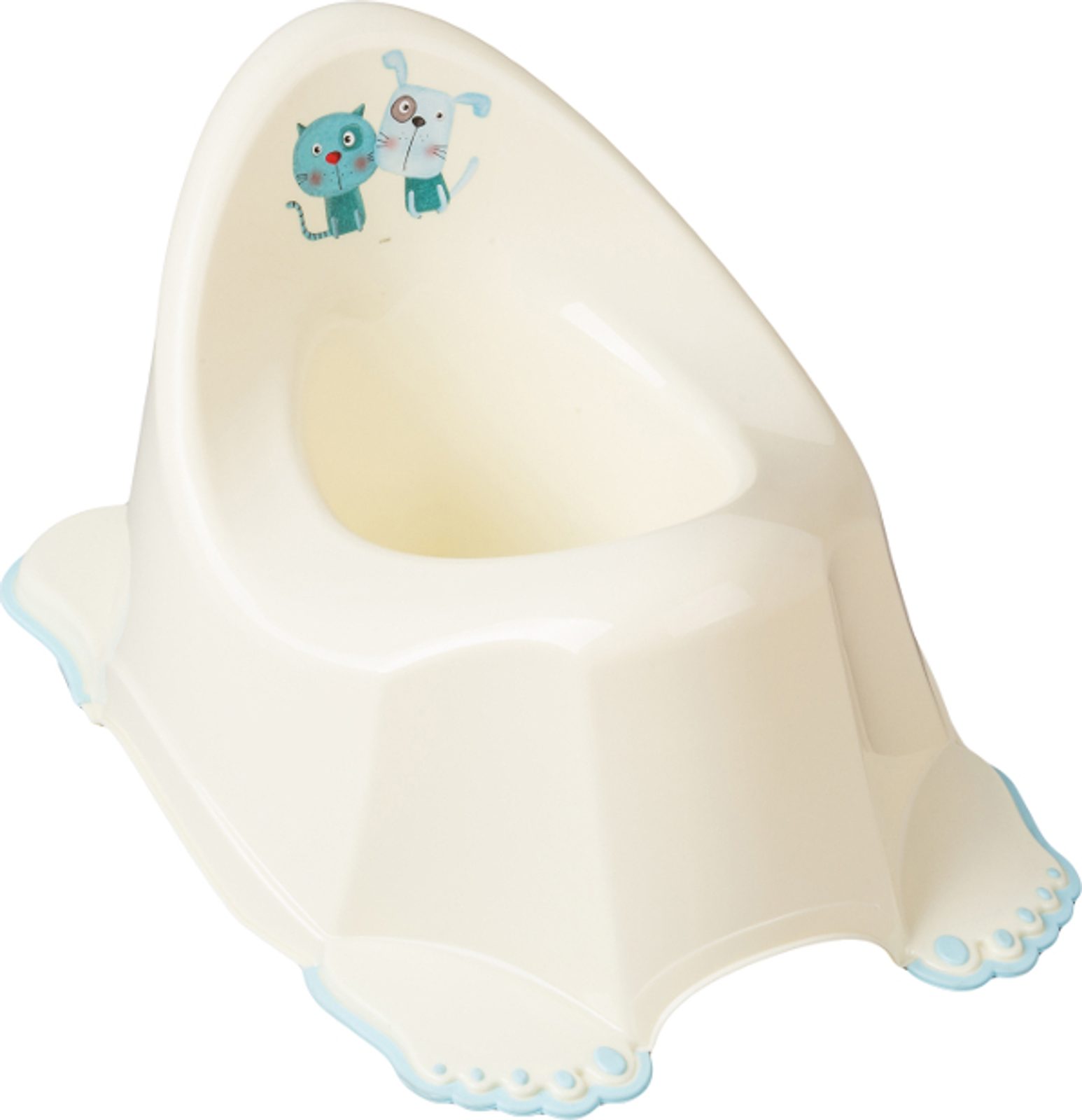Dětský nočník s obrázkem pejska a kočičky v krásných pastelových barvach. Je lehký, kompaktní a díky svému tvaru, vysoké opěrce zad a širokému sedátku poskytuje dětem pohodlí. Spodní strana má protiskluzovou úpravu pro větší bezpečí Vašeho dítěte. Rozměry dxvxš cca 38x23x25 cm.