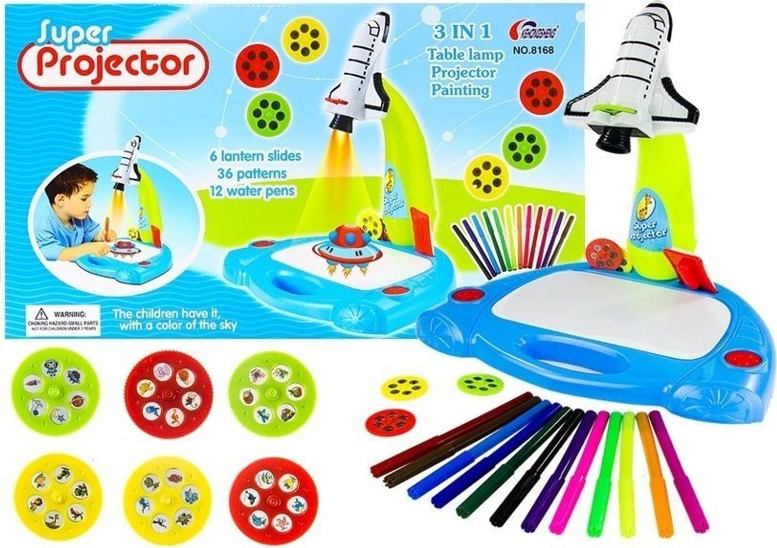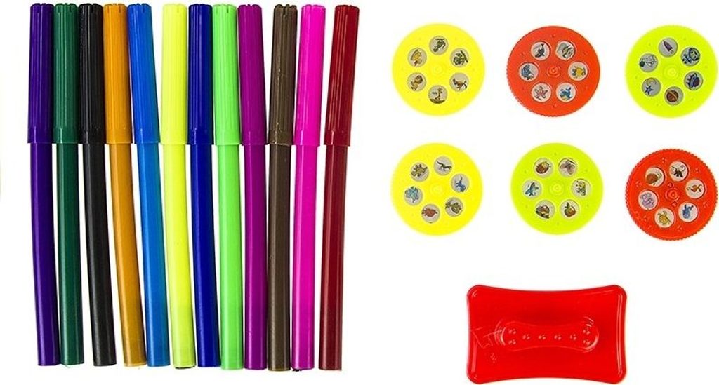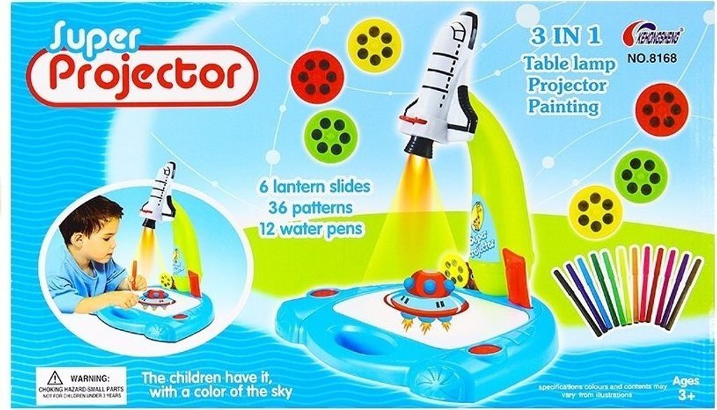 Dětský projektor ve tvaru vesmírné rakety je skvělou vychytávkou pro všechny děti, které milují hračky s jedinečným designem a také milují kreslení a malování . Tento projektor má až 3 různé funkce, což zaručuje nekonečnou zábavu. Pomocí rakety může dítě kopírovat obrázky z přiložených 36 vzorů, vystavovat je na zeď , vytvářet neobvyklé dekorace a pozadí pro hraní a především vytvářet svá vlastní originální díla. Sada obsahuje 6 disků s 36 obrázkovými vzory, 6 fixů v nejnutnějších barvách a houbičku na mazání obrázků. Jsme přesvědčeni, že sada příslušenství udělá z hraní s projektorem pro vaše dítě skvělou zábavu.