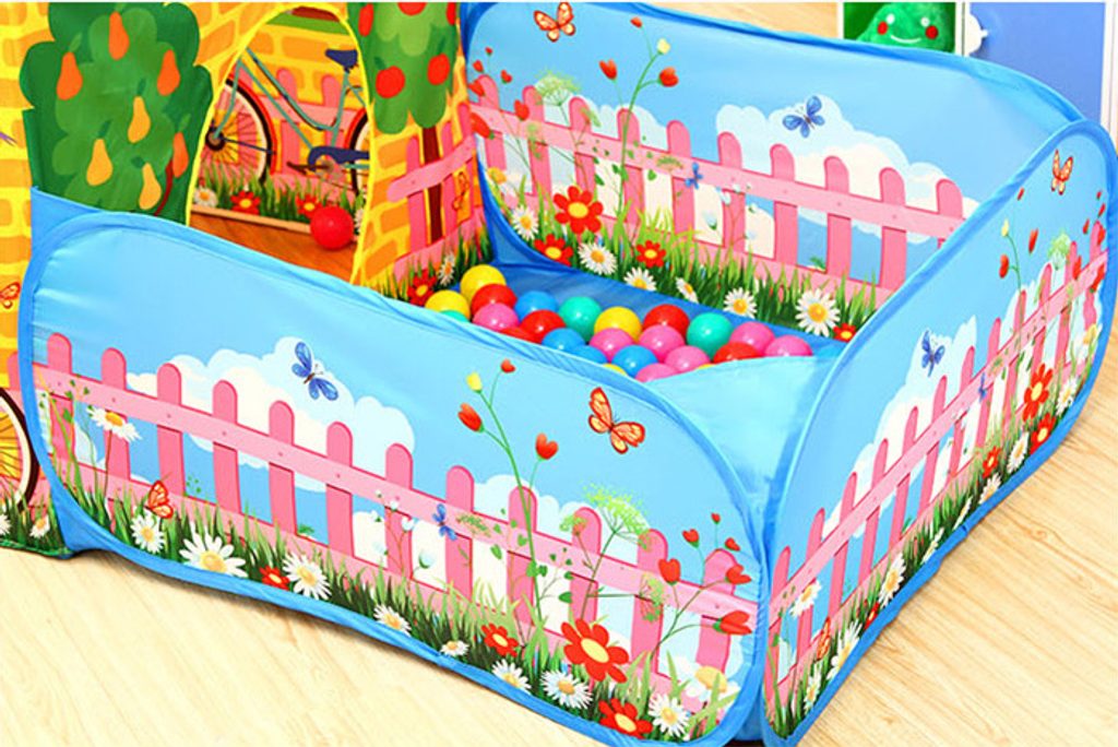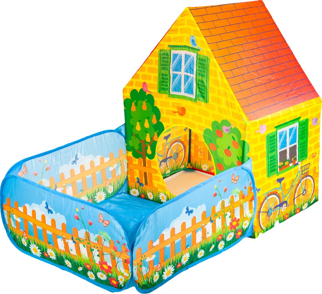 Stan vám dává příležitost zažít nezapomenutelnou zábavu doma i venku. Bude to perfektní úkryt pro dítě! Zářivé barvy a pestré obrázky zaujmou každé dítě a udělají zábavu ještě zajímavější. Tvar výrobku připomíná dům - má střechu. Celé téma stanu je stylizováno jako dům se zahradou, která slouží i jako suchý bazén pro děti. Stan je praktický a snadno se montuje. Díky lehkému rámu je snadné jej přemístit z jednoho místa na druhé.