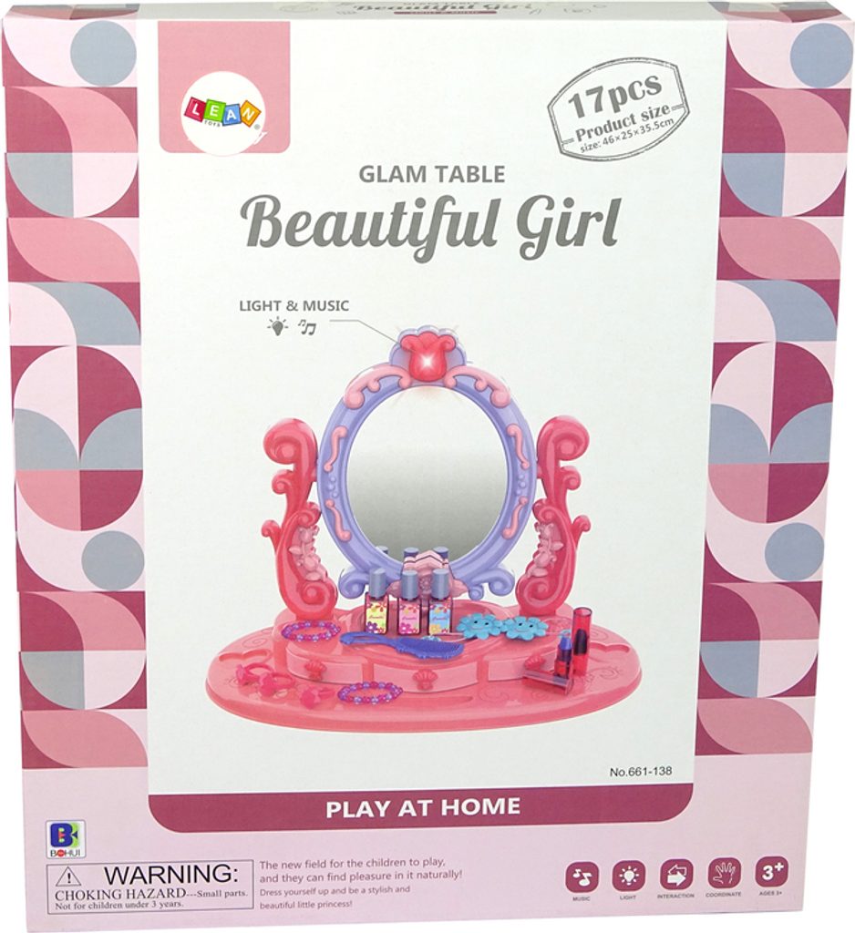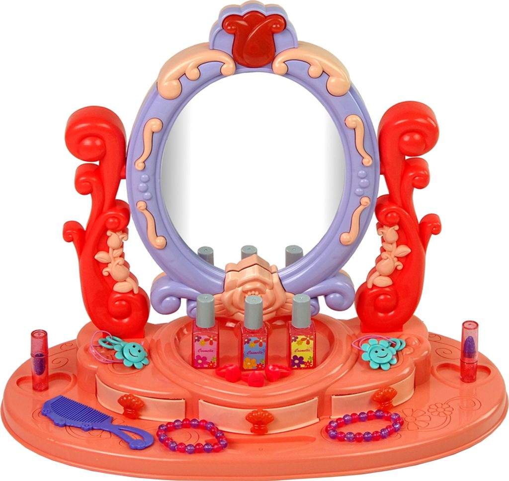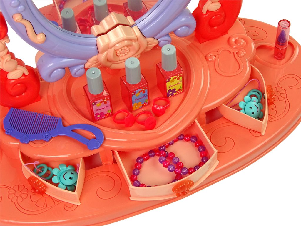 Toaletní stolek má nečekanou funkci, světelné a zvukové efekty. Uprostřed zrcadla je červená růže, stačí stisknout a spustí se pohádkové zvuky a růže se rozsvítí červeně. Dívka se může cítit jako ve skutečné pohádce.