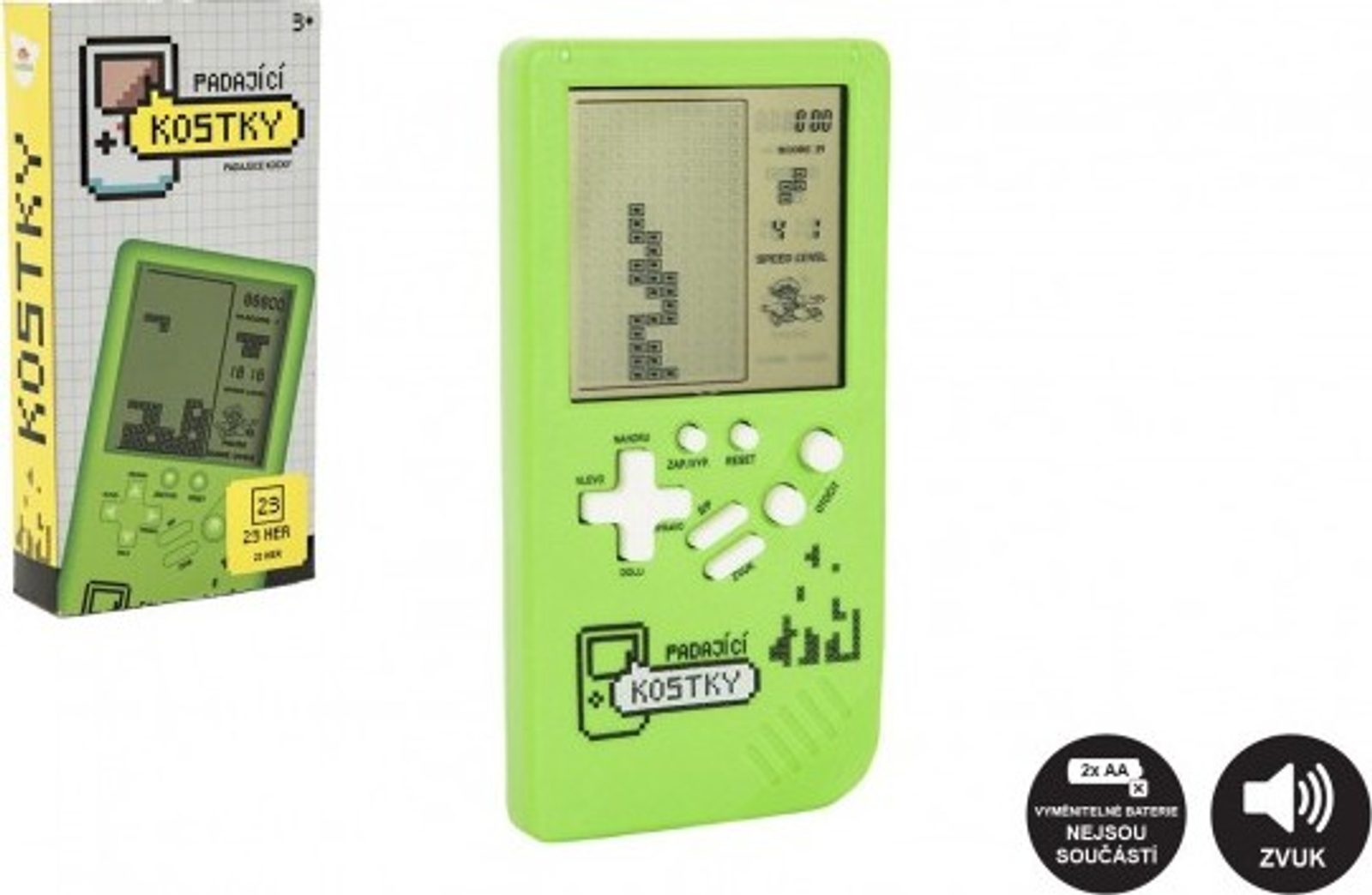 Klasická elektronická hra se skládáním kostiček. Cílem hry je skládat různé tvary do sebe a nenechat žádné místo v řadě prázdné. Po zaplnění celé řady se posune vše o řadu dolů. Skládat můžete až do zaplnění celého displeje. Hra je na baterie, se zvukem. Baterie 2x AA nejsou součástí výrobku.
