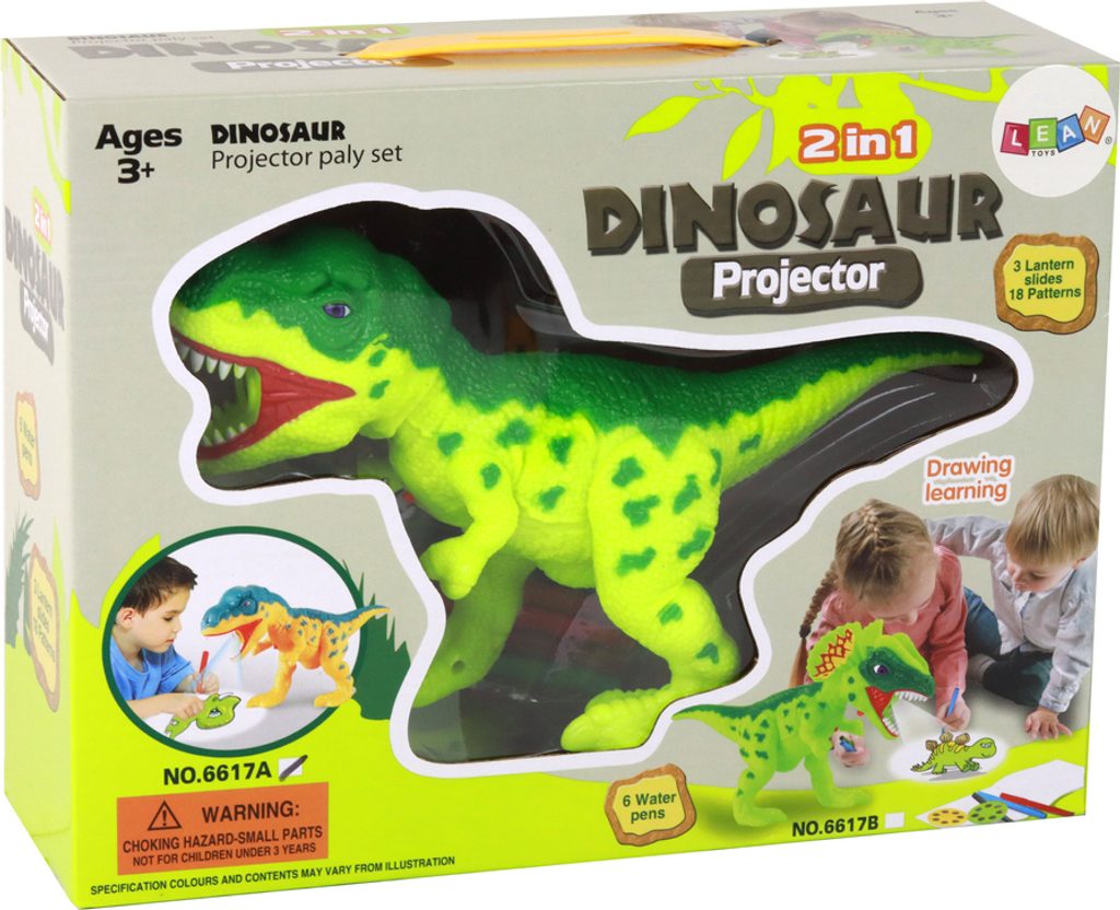 Zobrazuje obrázky k malování! Projektor, dinosaurus na hraní a lampa. Dinosauří projektor včetně fixů.